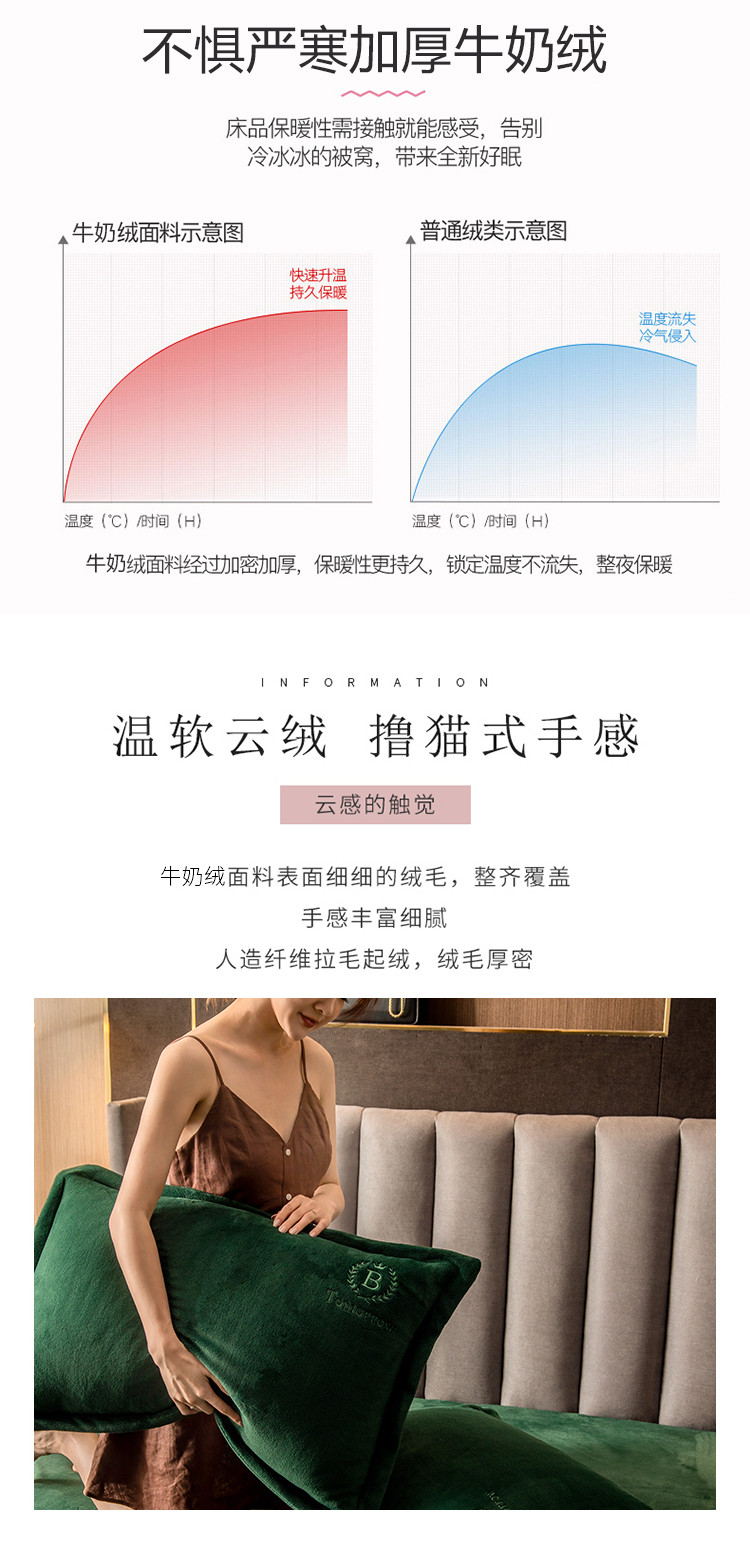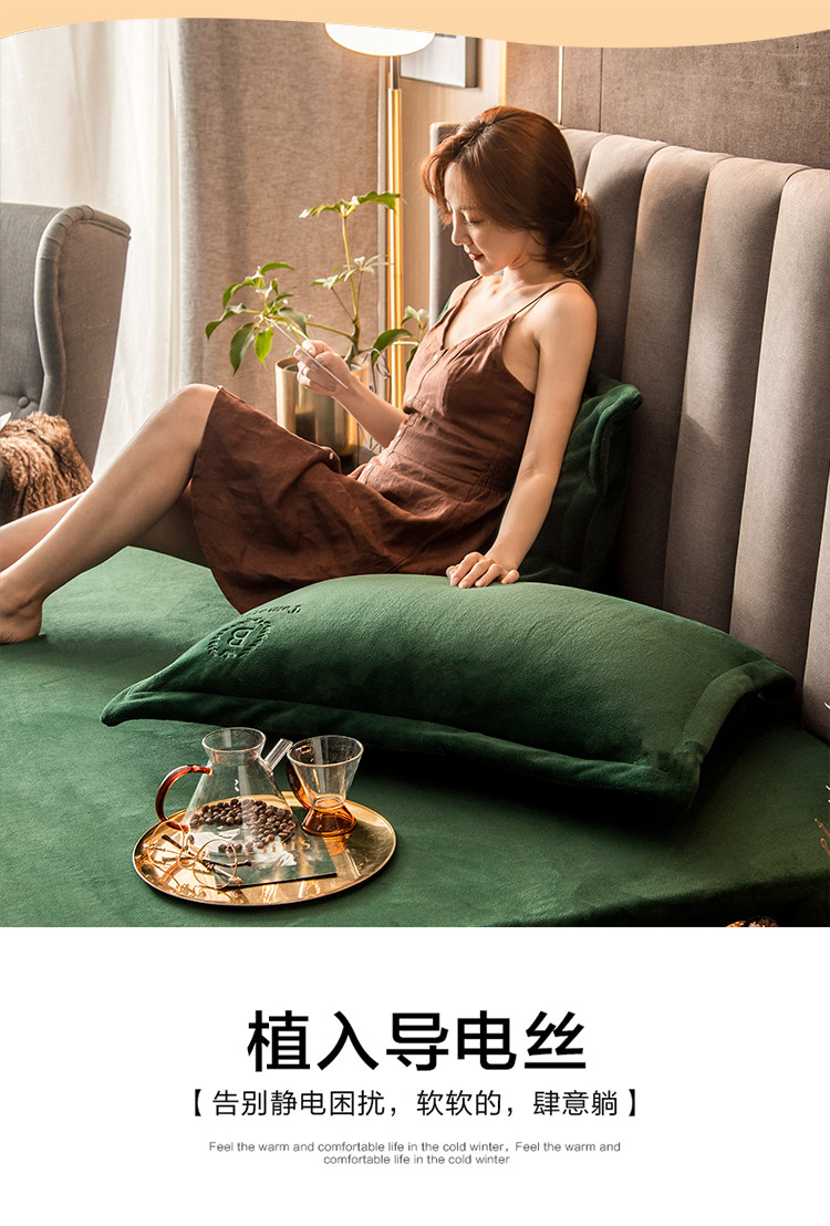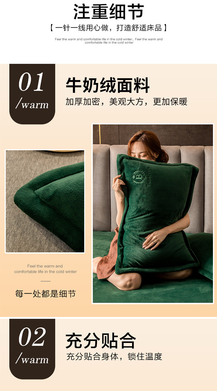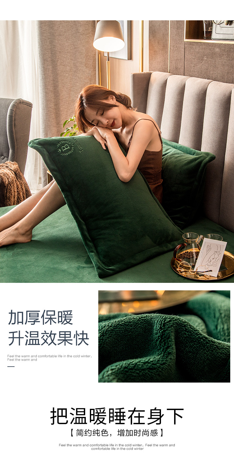 • 91家纺网 家纺一手货源 找家纺 丽美人 2022新款加厚保暖纯色简约牛奶绒系列单品枕套 松柏绿一对