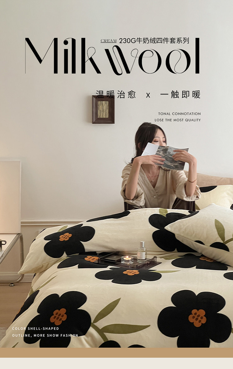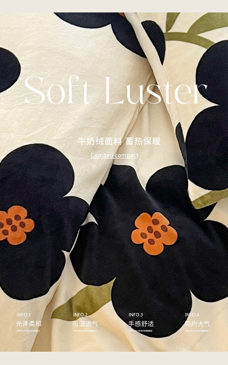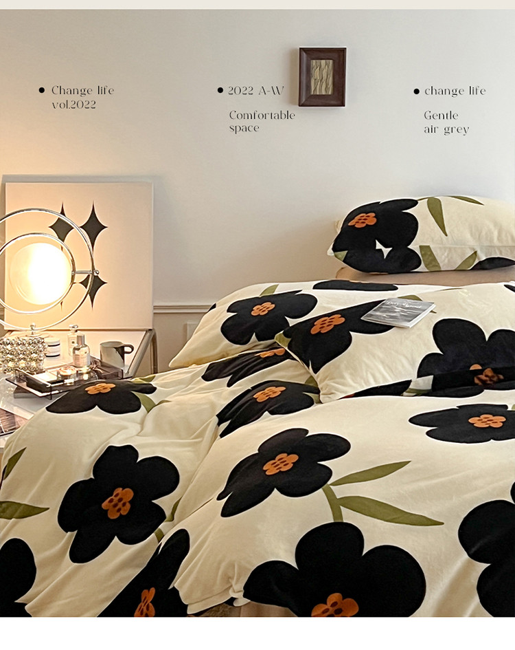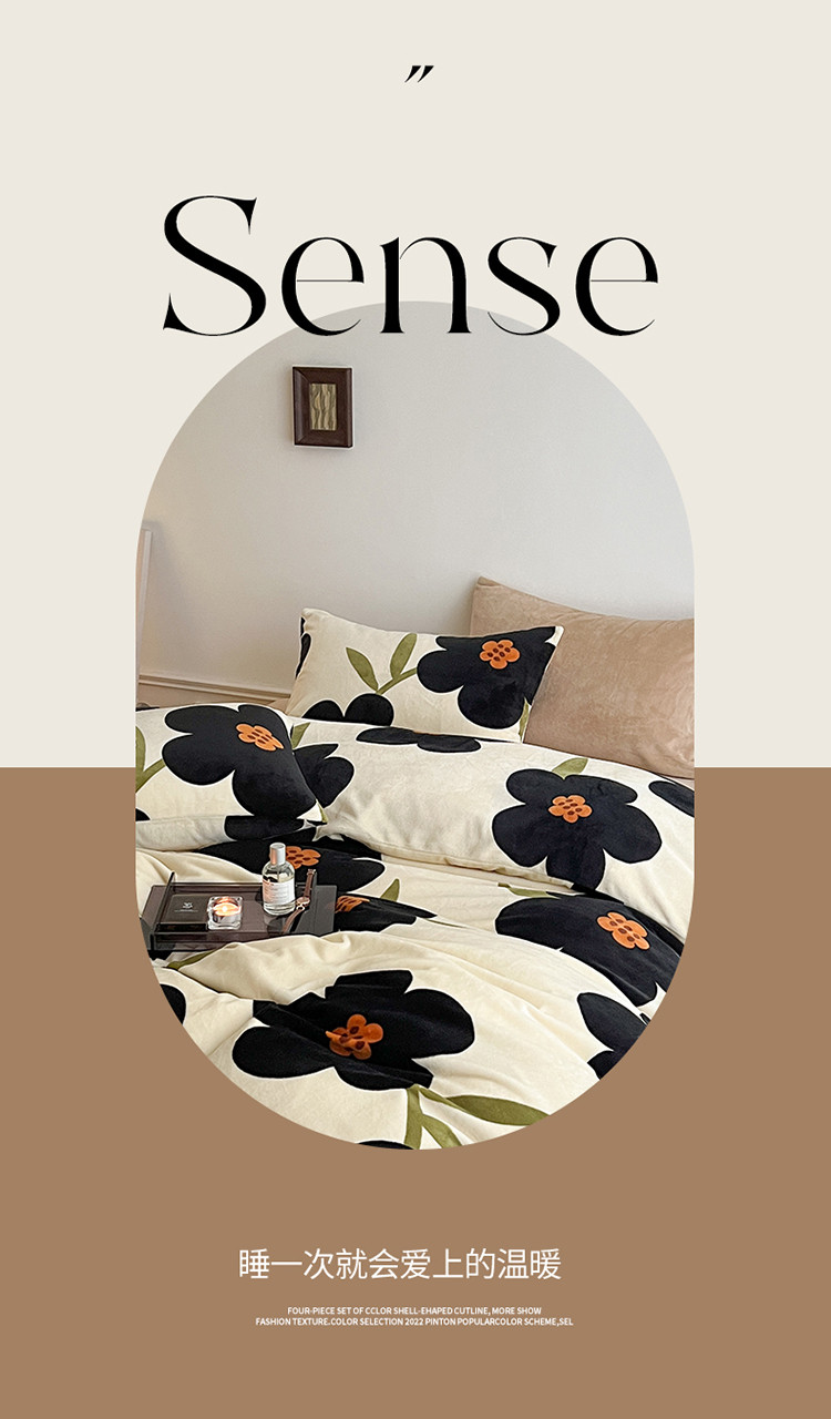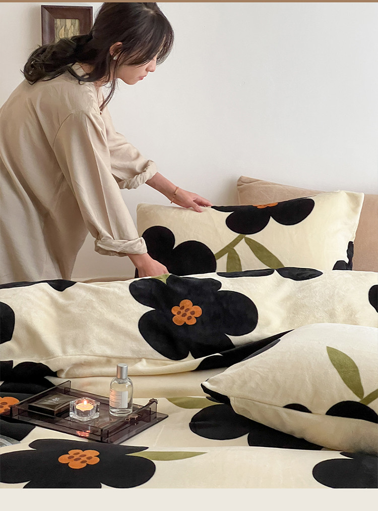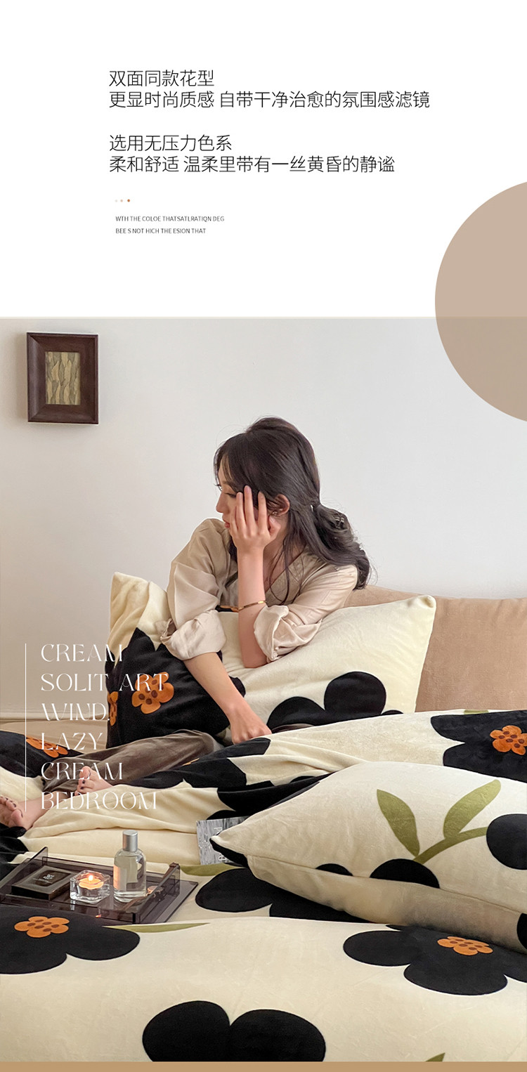 当前位置: 91家纺网 > 商品网购 > 床品套件 > 四件套 > 牛奶绒四件套 > 圆岛家纺 2022新款230克高克重牛奶绒保暖四件套 太阳花