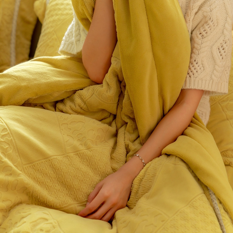 商品名称:馨蕊 新款秋冬轻奢刺绣煦暖绒四件套-莫奈 (图二) 莫奈-氧气黄