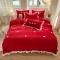 金米诺 2022直播供货韩版花边纯色牛奶绒水晶四件套 大红