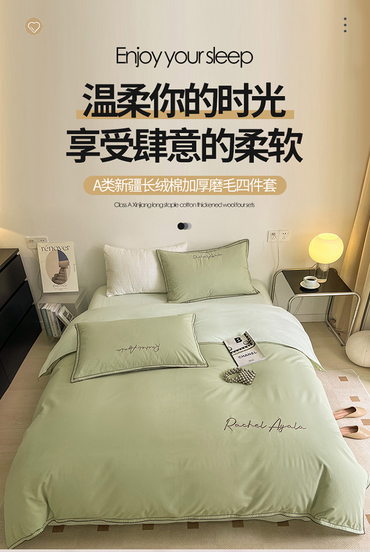 (总)艾莱家纺 2025新款A类新疆长绒棉加厚柔顺磨毛四件套--爱永恒系列,爱永恒-可可奶,爱永恒-大地色,爱永恒-北欧灰,爱永恒-抹茶绿,爱永恒-浅豆沙,爱永恒-嫣红