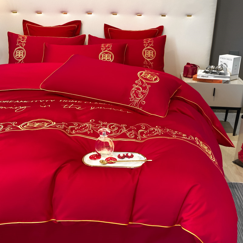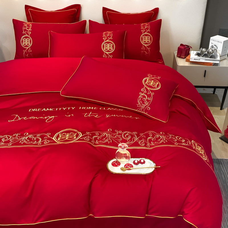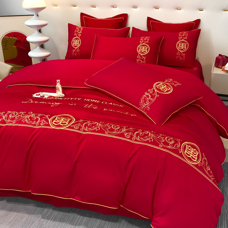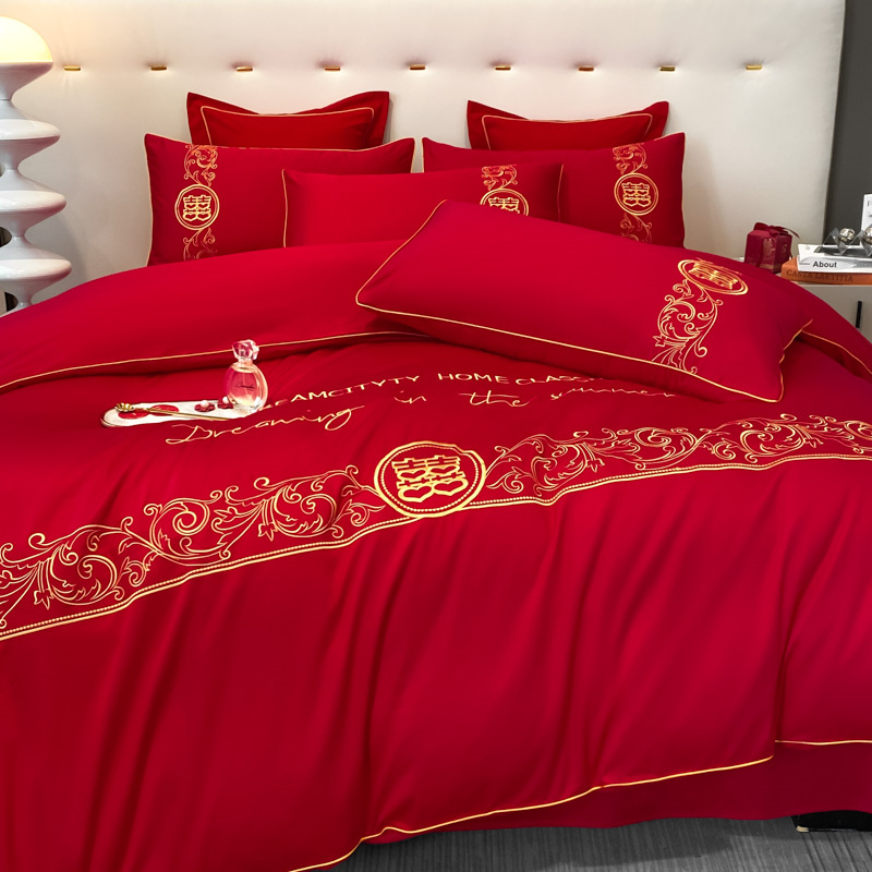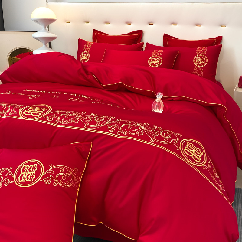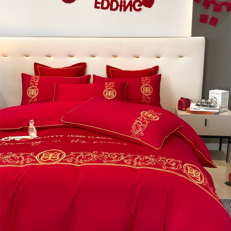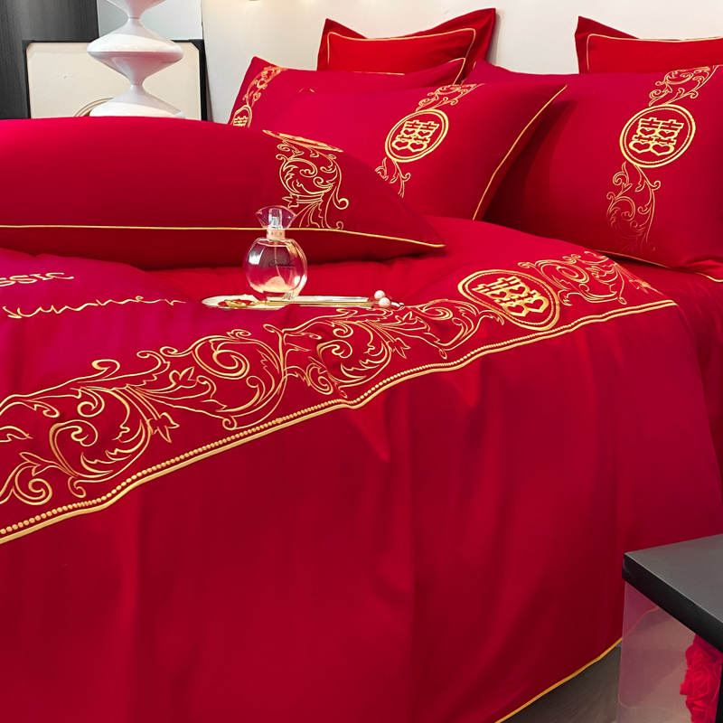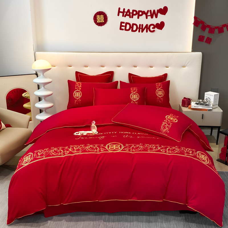 (总)金麦家纺 2025新款亲肤磨毛刺绣婚庆四件套,大喜,喜结良缘,喜愿,吾家有喜,喜爱,玫瑰有约