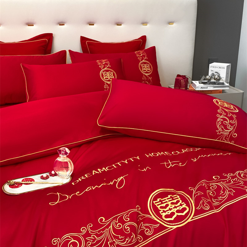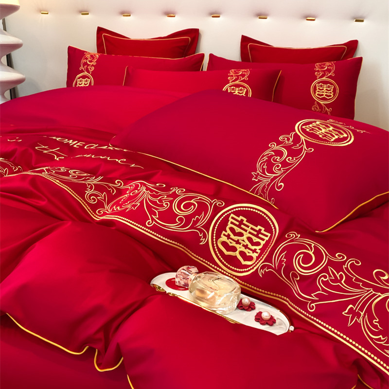 (总)金麦家纺 2025新款亲肤提花面料刺绣婚庆四件套-婚庆系列,热情玫瑰,喜悦,永恒