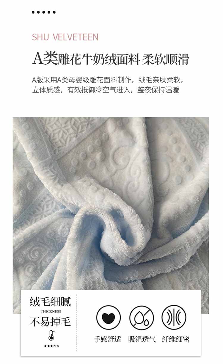 商品名称:铠畅 2023新款230克牛奶绒烂花邂逅系列四件套 邂逅浅蓝