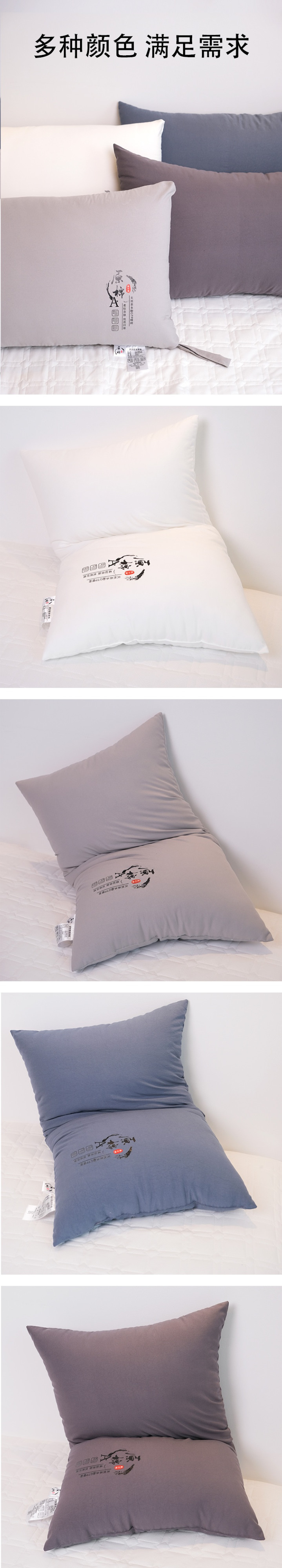 (总)爱尚家枕芯 2025新款棉花亲肤枕枕头枕芯,白色,粉色,灰色