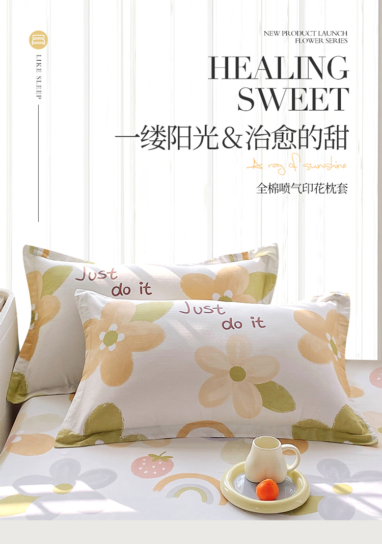 商品名称:拾物记 2023新款全棉喷气花卉条纹格子枕套 安暖如夏