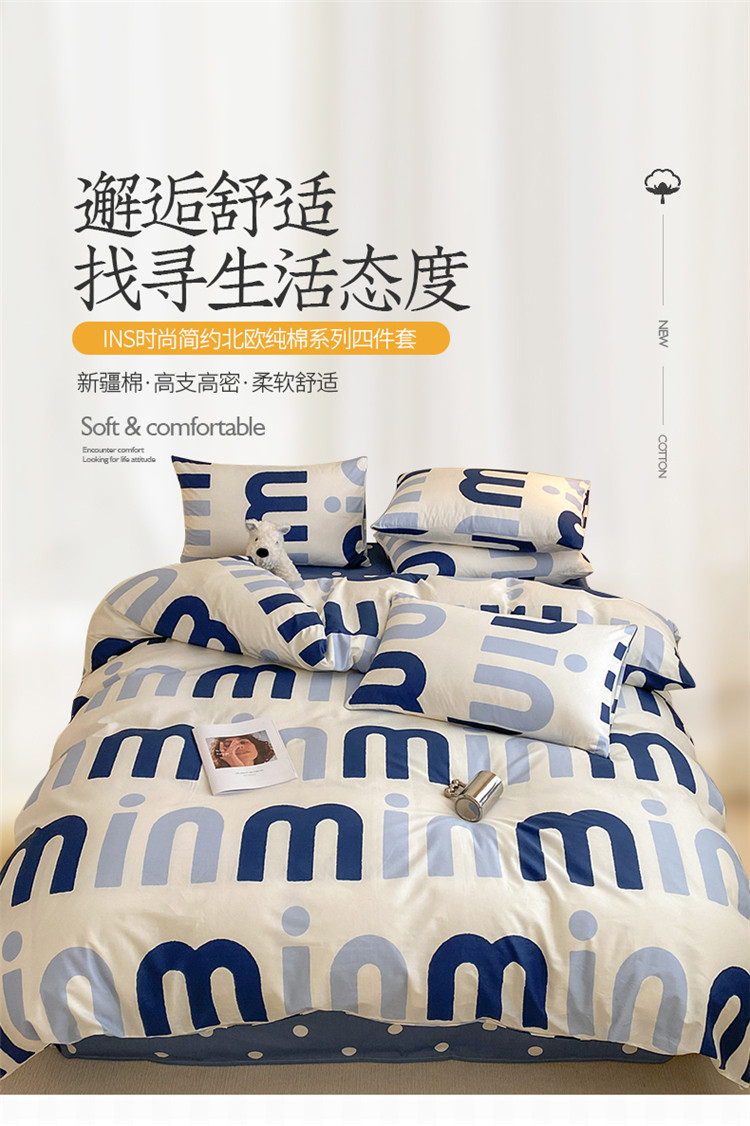 桃子 2023新款ins时尚简约北欧纯棉系列四件套 棉-蓝色字母