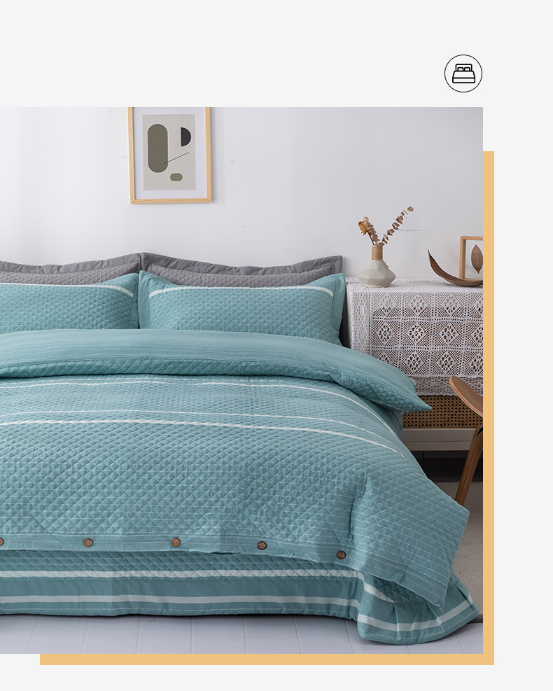 当前位置: 91家纺网 > 商品网购 > 床品套件 > 四件套 > 水洗棉四件套 > 优乐家纺 2025新款全棉水洗纯棉夹棉绗缝加厚四件套 青春绿