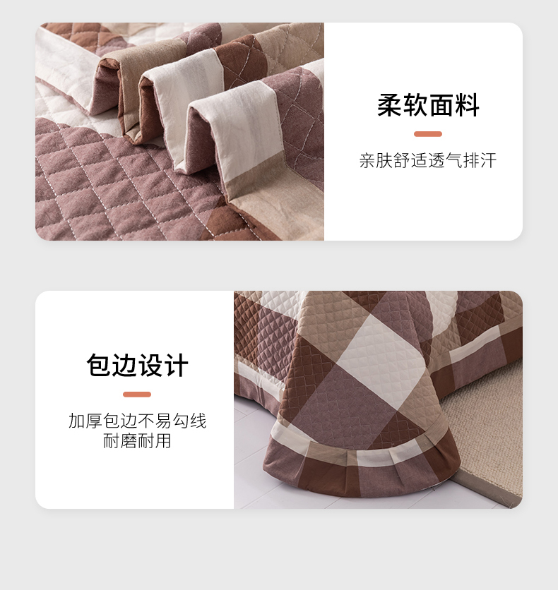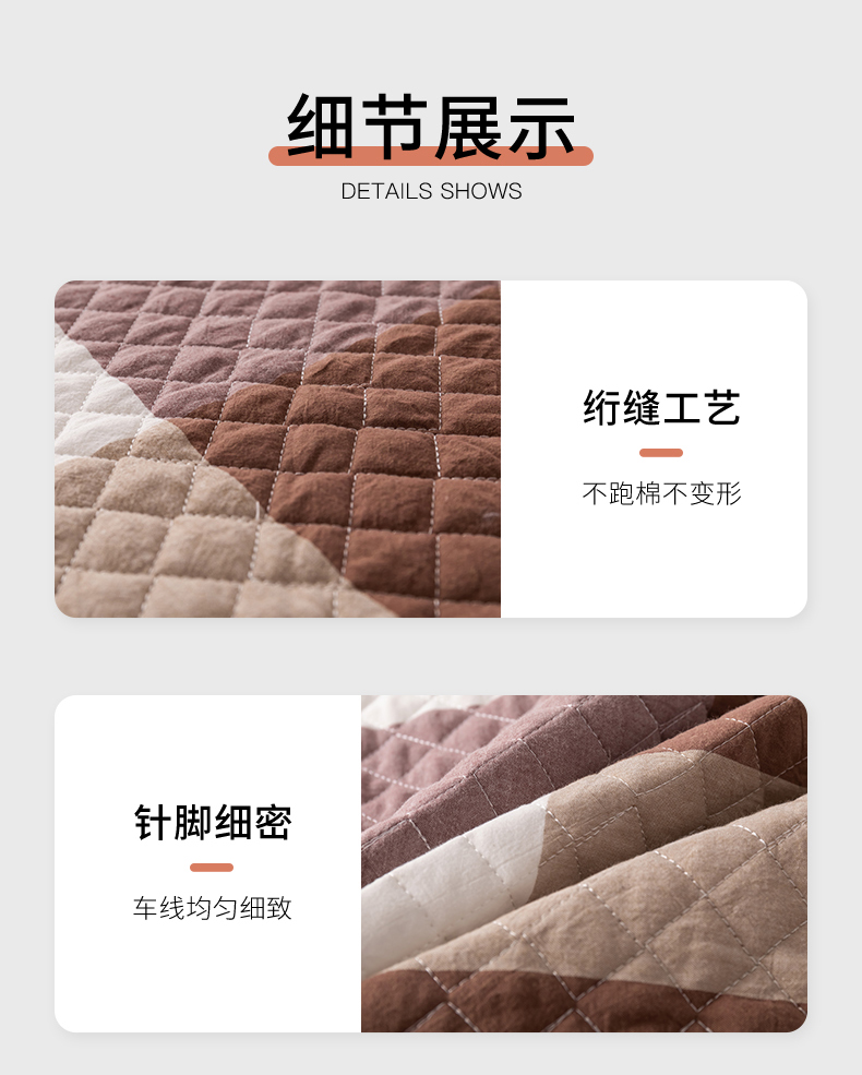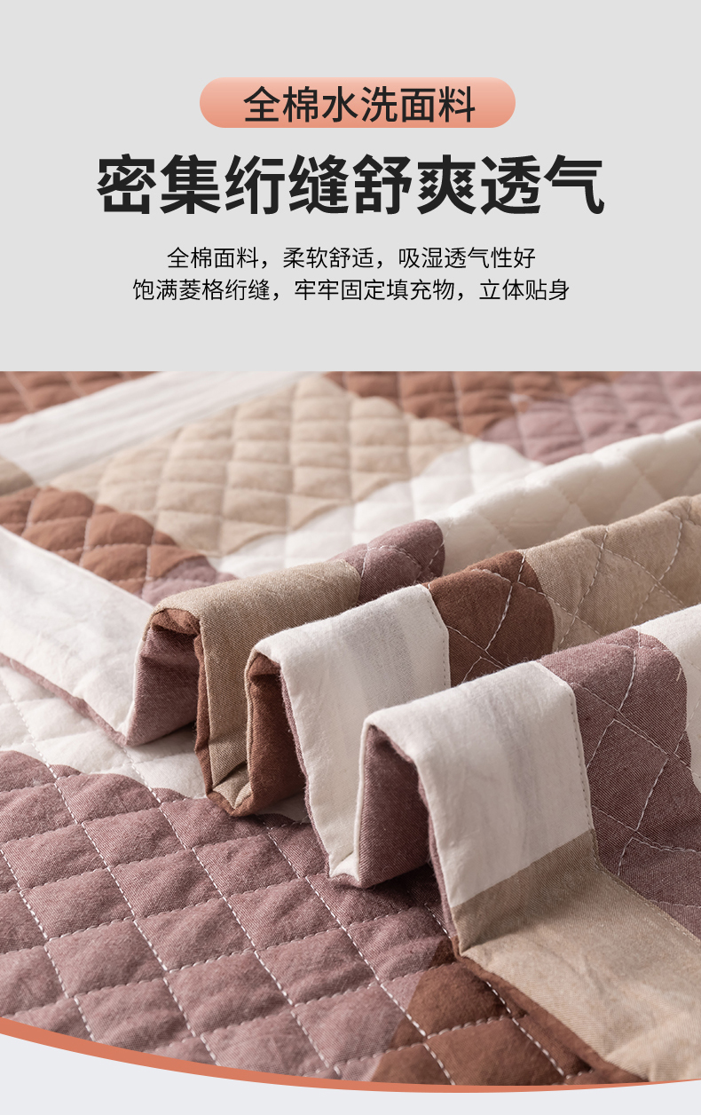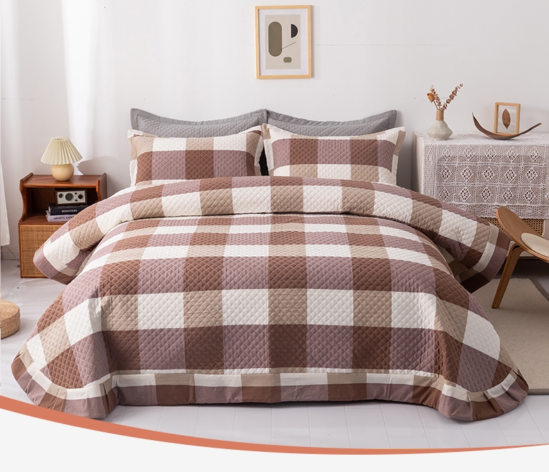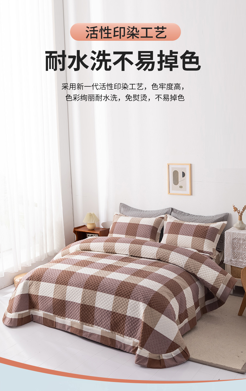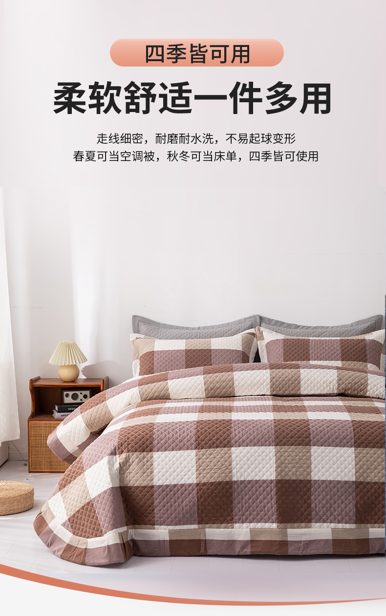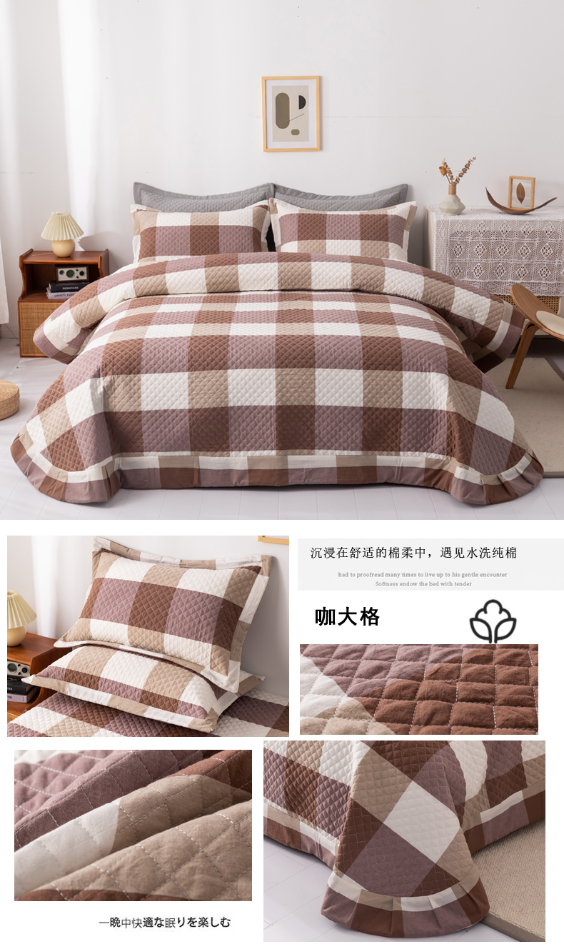 商品名称:优乐家纺 2025新款全棉床盖三件套水洗纯棉夹棉绗缝加厚铺盖 咖大格