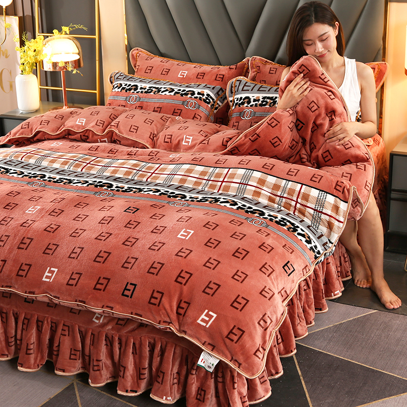 商品名称:爱上家居 2023新款加厚牛奶金貂绒四件套 欧典风尚