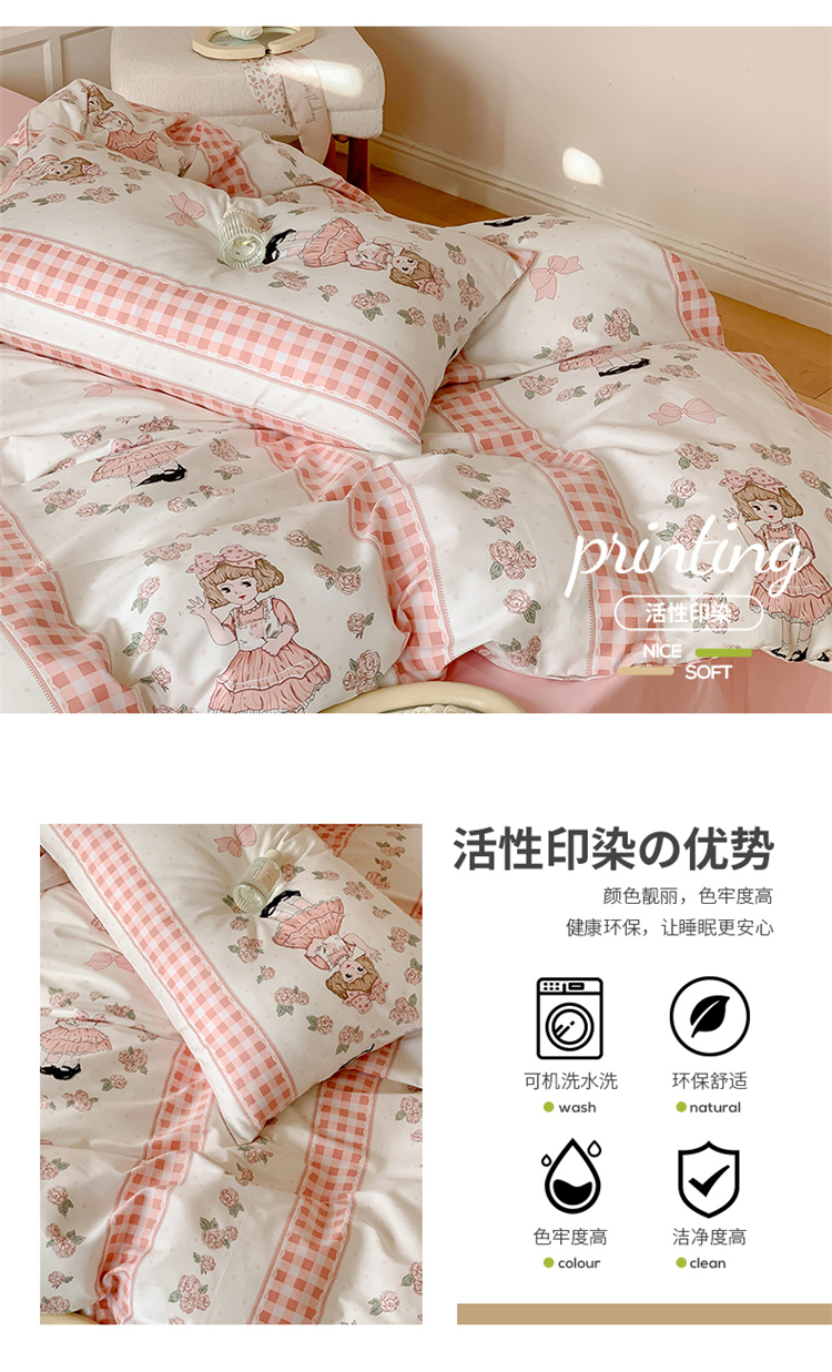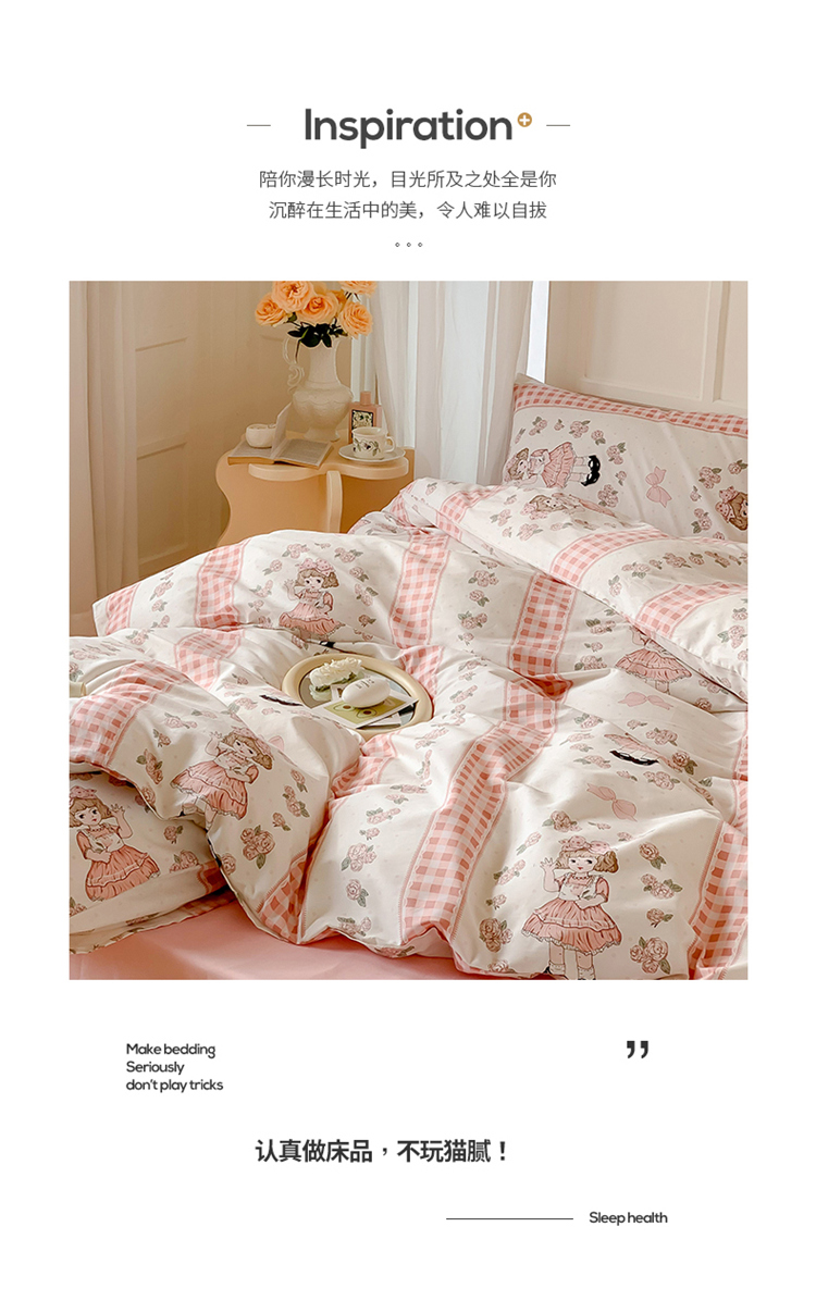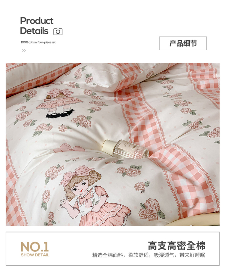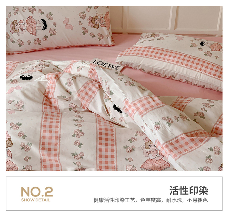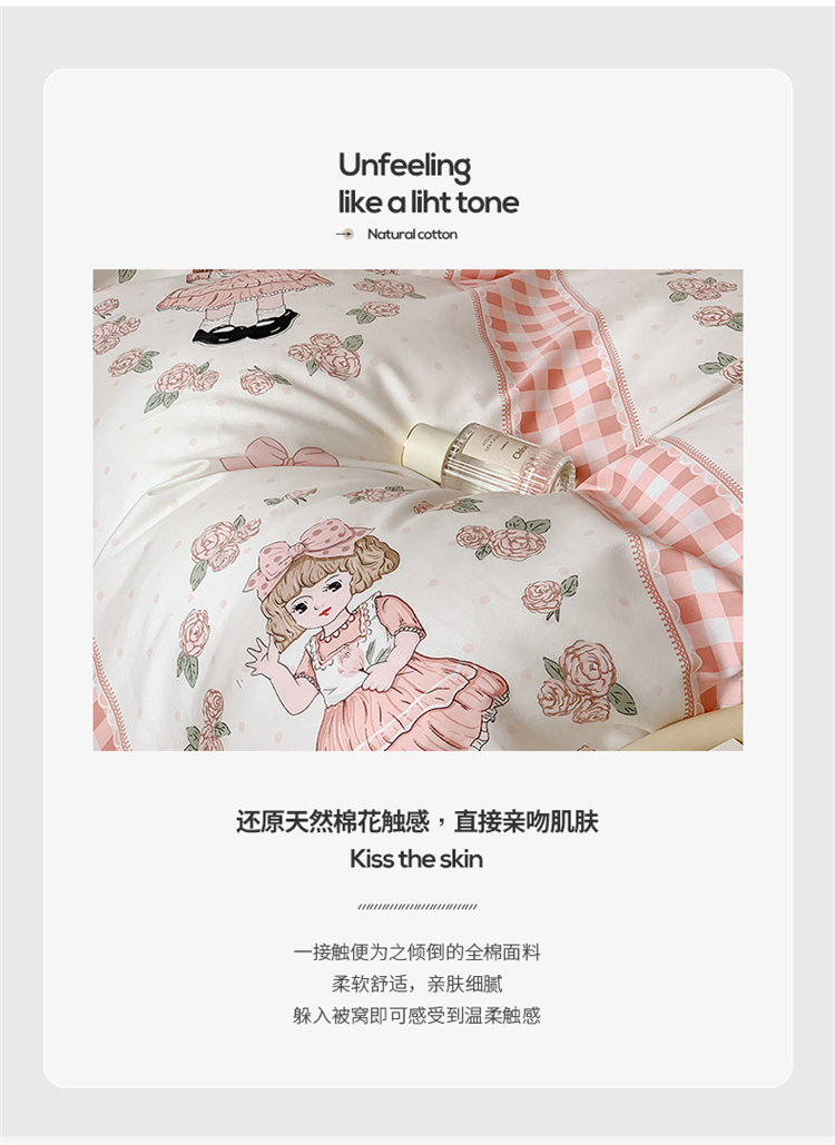 窝米2023新款全棉13370四件套洛丽塔系列 萝莉粉