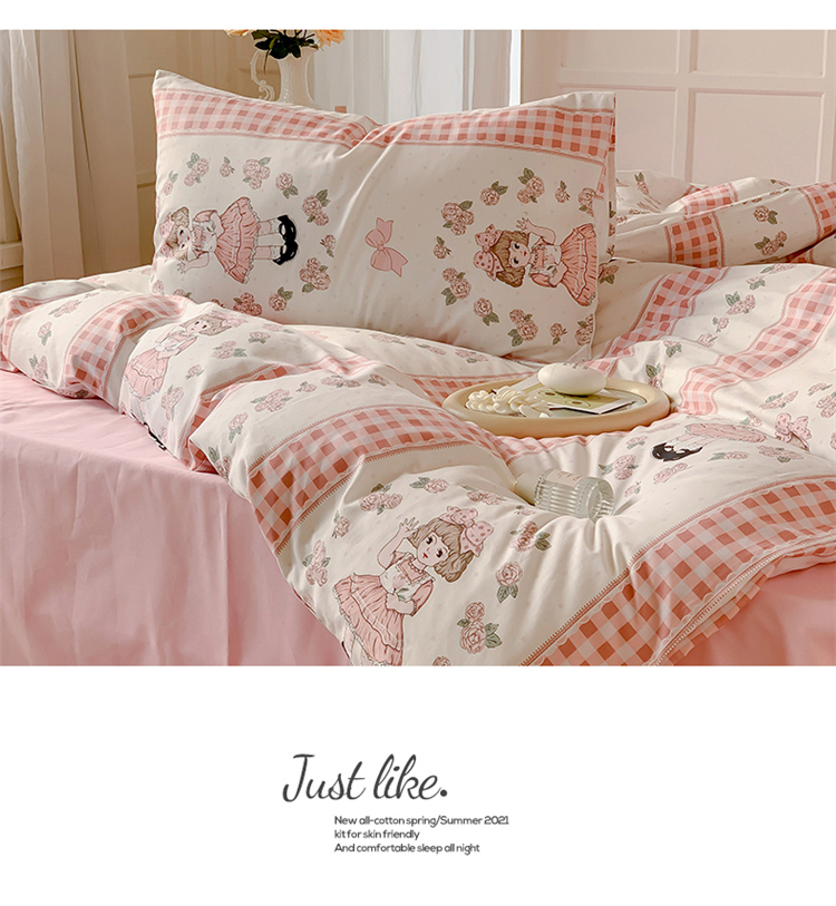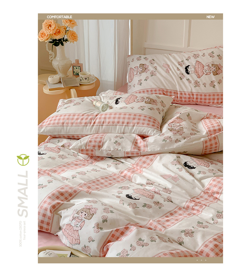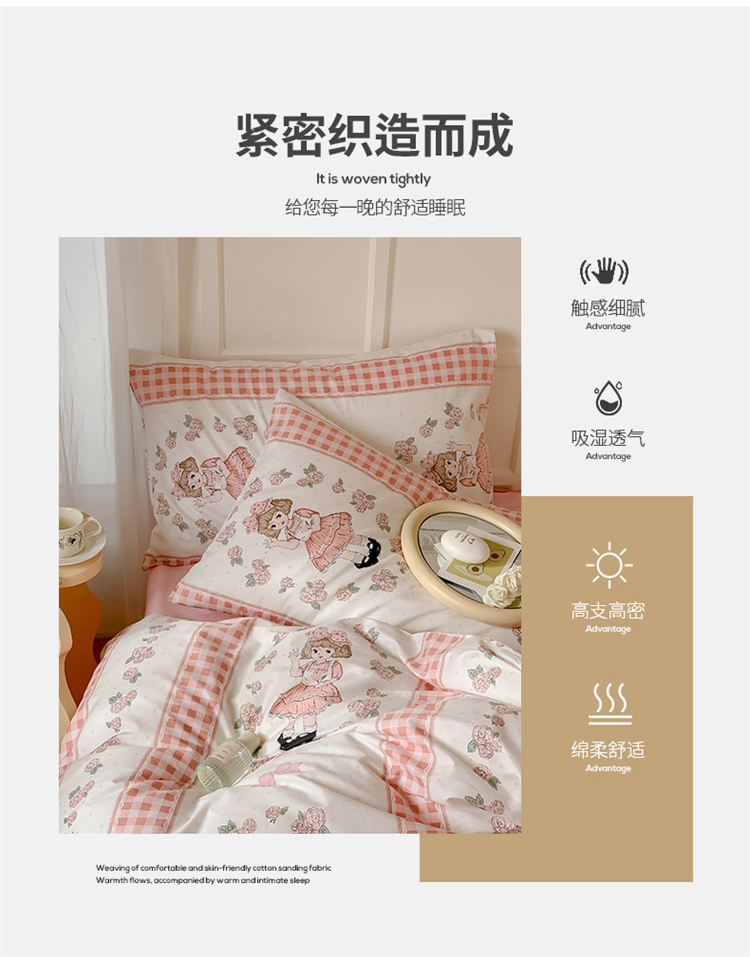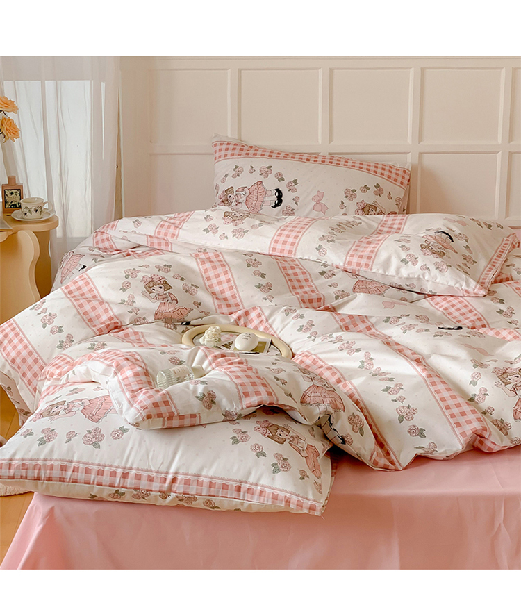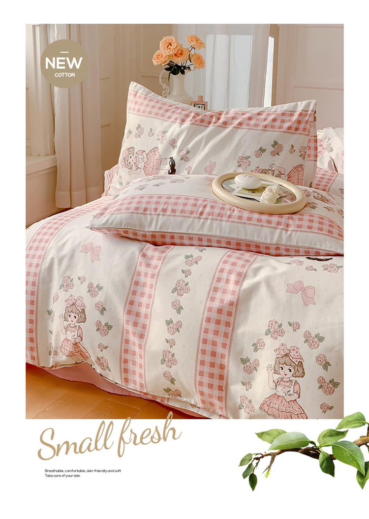 窝米2023新款全棉13370四件套洛丽塔系列 萝莉粉