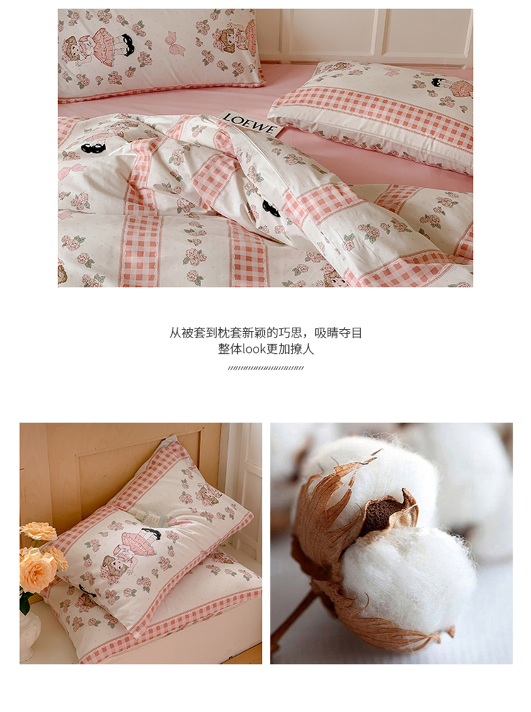 (总)窝米 2020春夏新品全棉13372四件套小波西风系列,草莓酱,木槿,小花花,小尤里