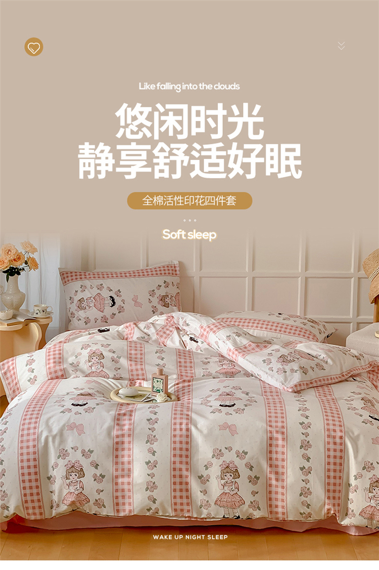 窝米 2020春夏新品全棉13372四件套小波西风系列小尤里,小尤里
