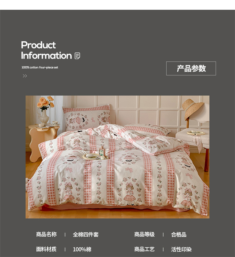 商品名称:窝米2023新款全棉13370四件套洛丽塔系列 萝莉粉
