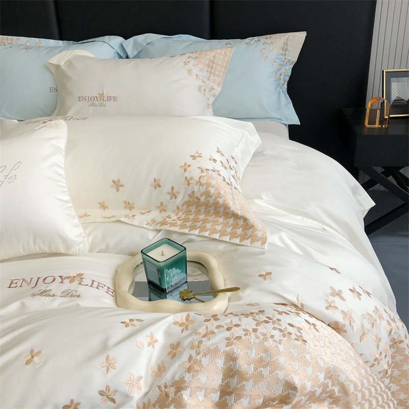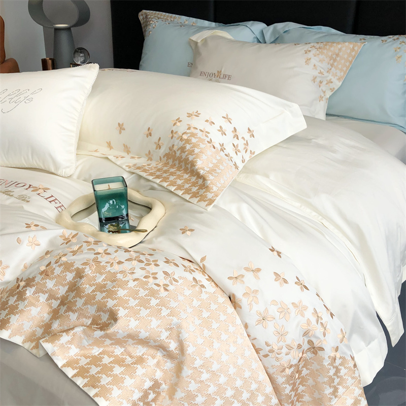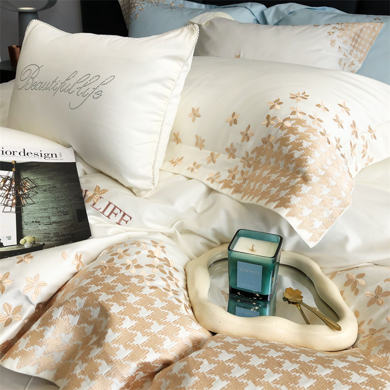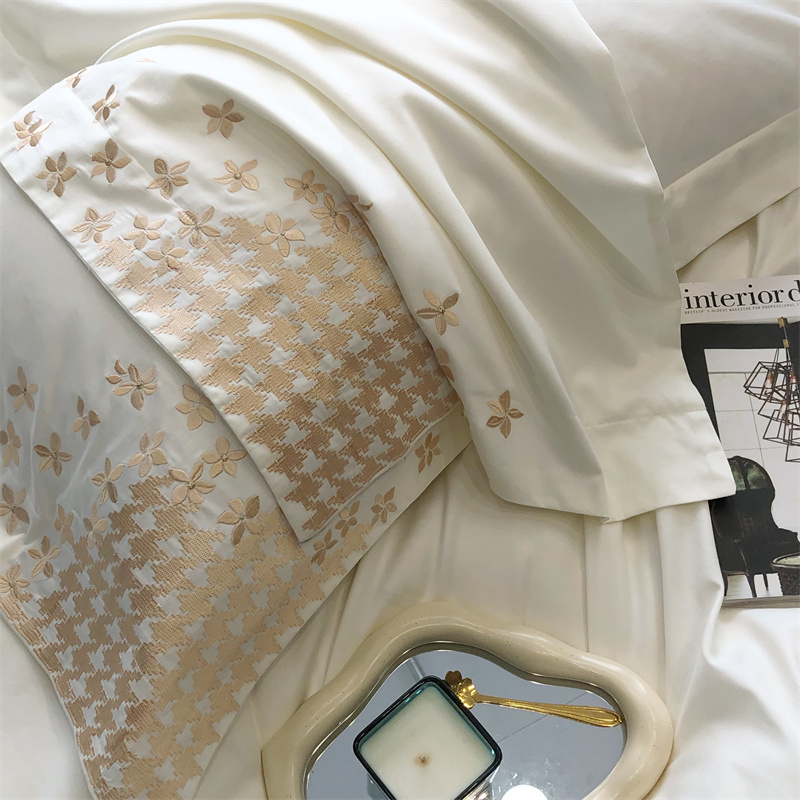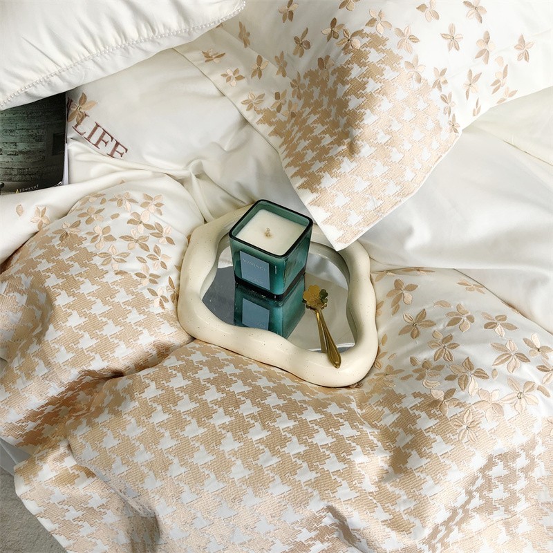 商品名称:馨蕊2023新款100支CR工艺全棉系列四件套-棉千鸟格 棉千鸟格-月光白