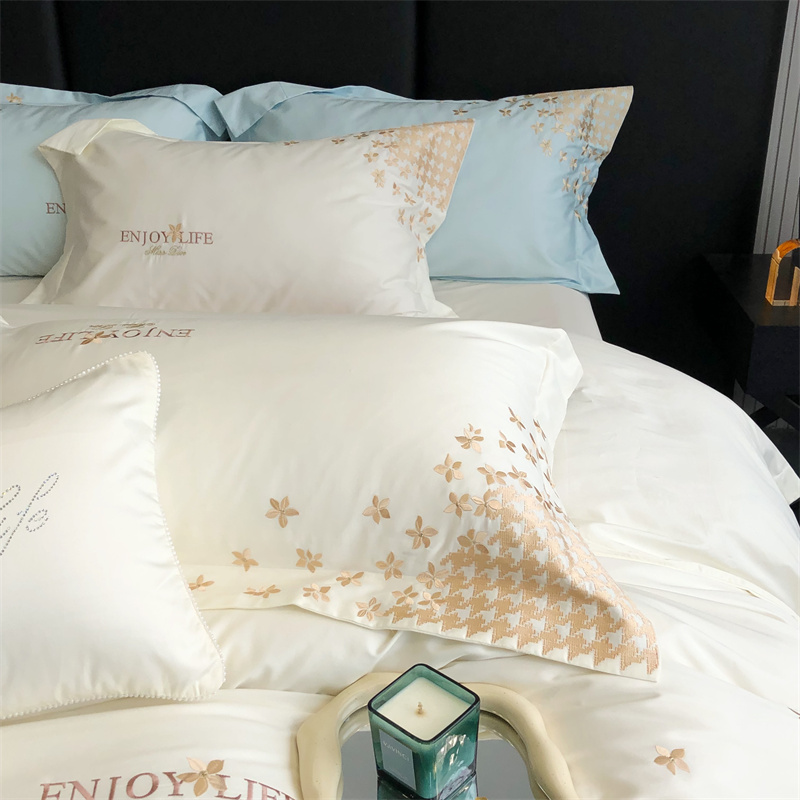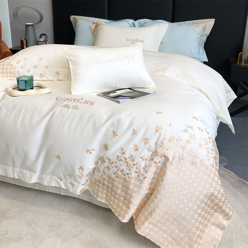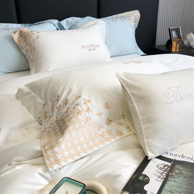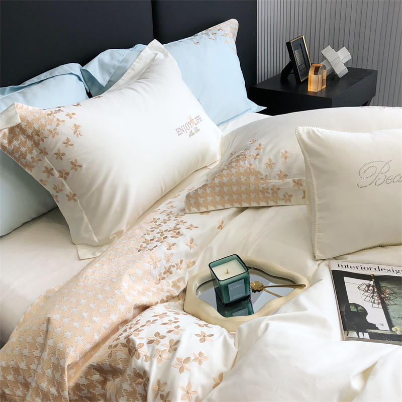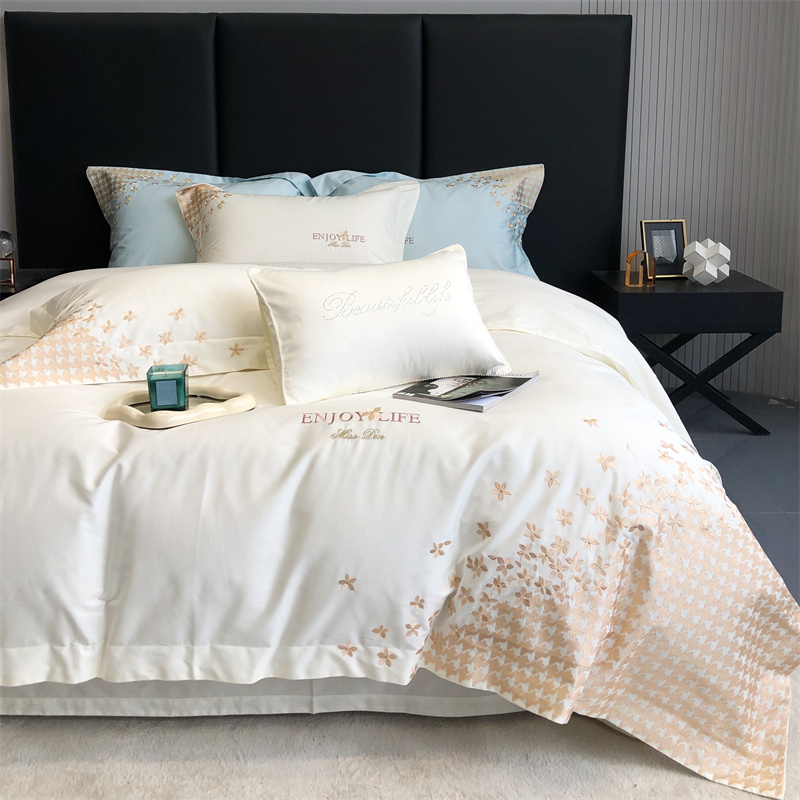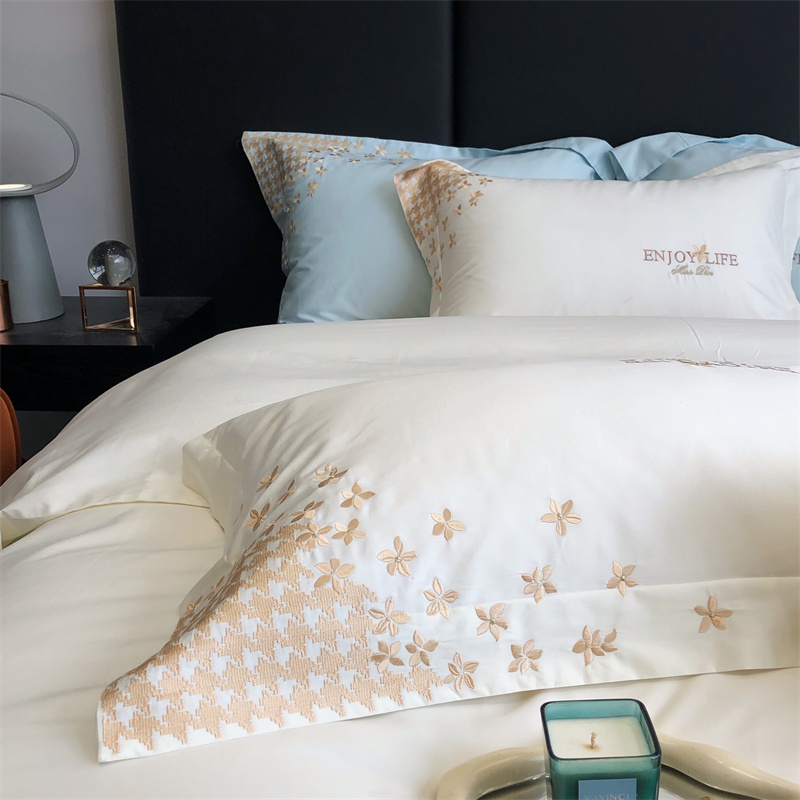 商品名称:馨蕊2023新款100支CR工艺全棉系列四件套-棉千鸟格 棉千鸟格-月光白