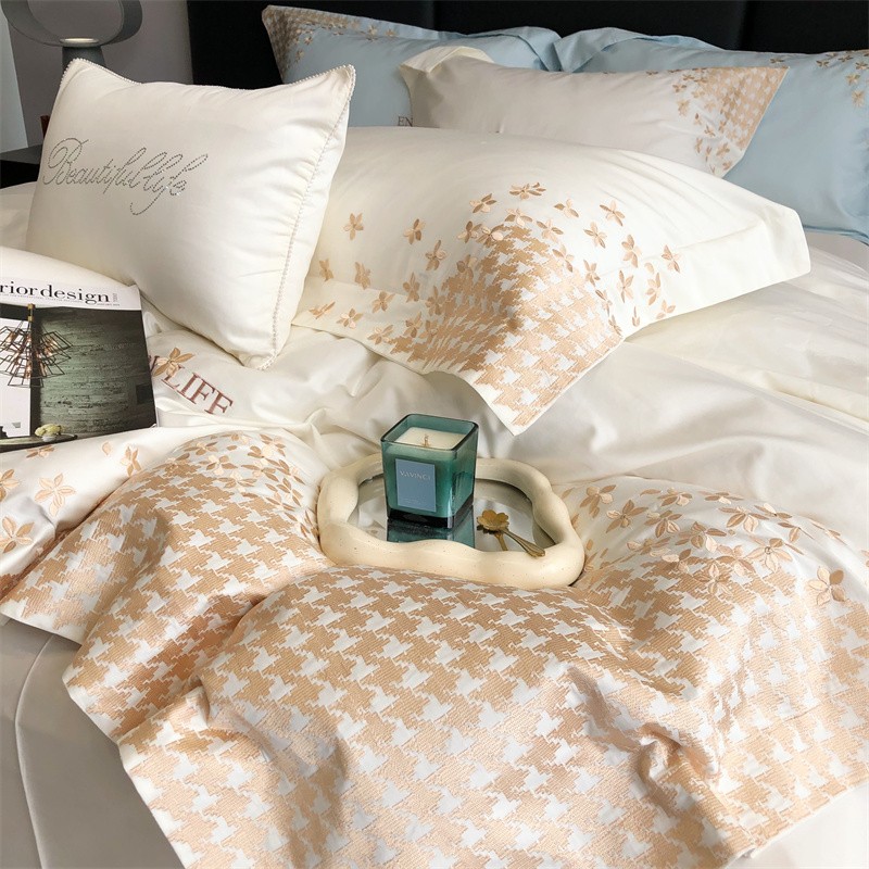 馨蕊2023新款100支CR工艺全棉系列四件套-棉千鸟格 棉千鸟格-月光白