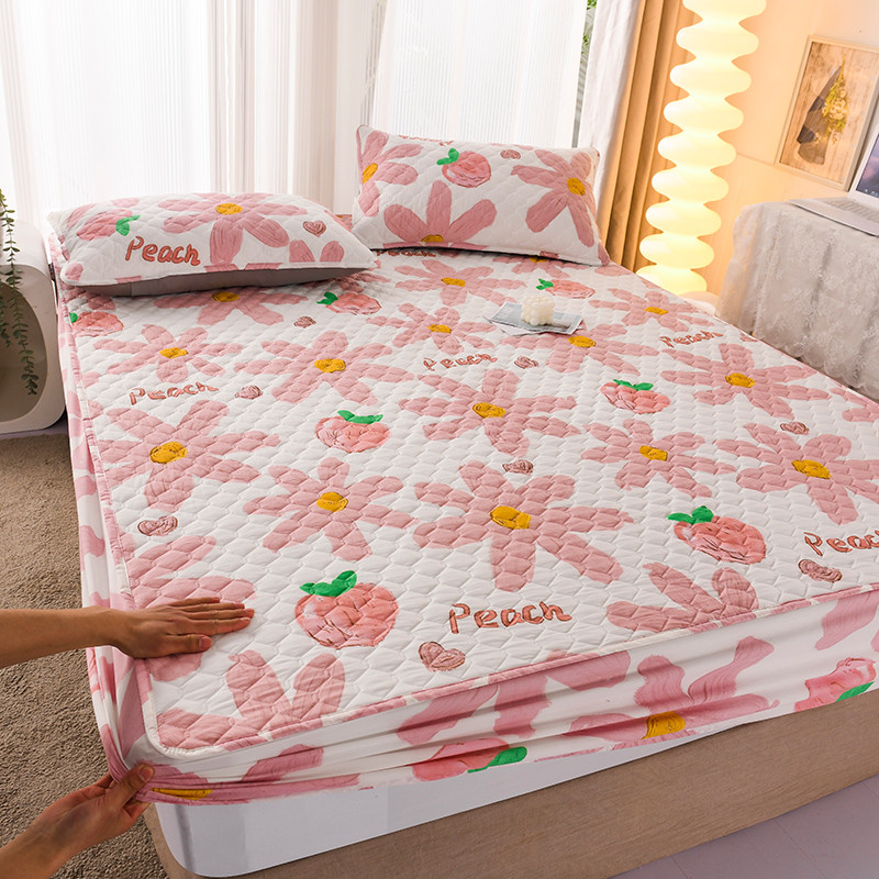 • 91家纺网 家纺一手货源 找家纺 九亭 2023新款A类纯棉夹棉床笠 水蜜桃-粉