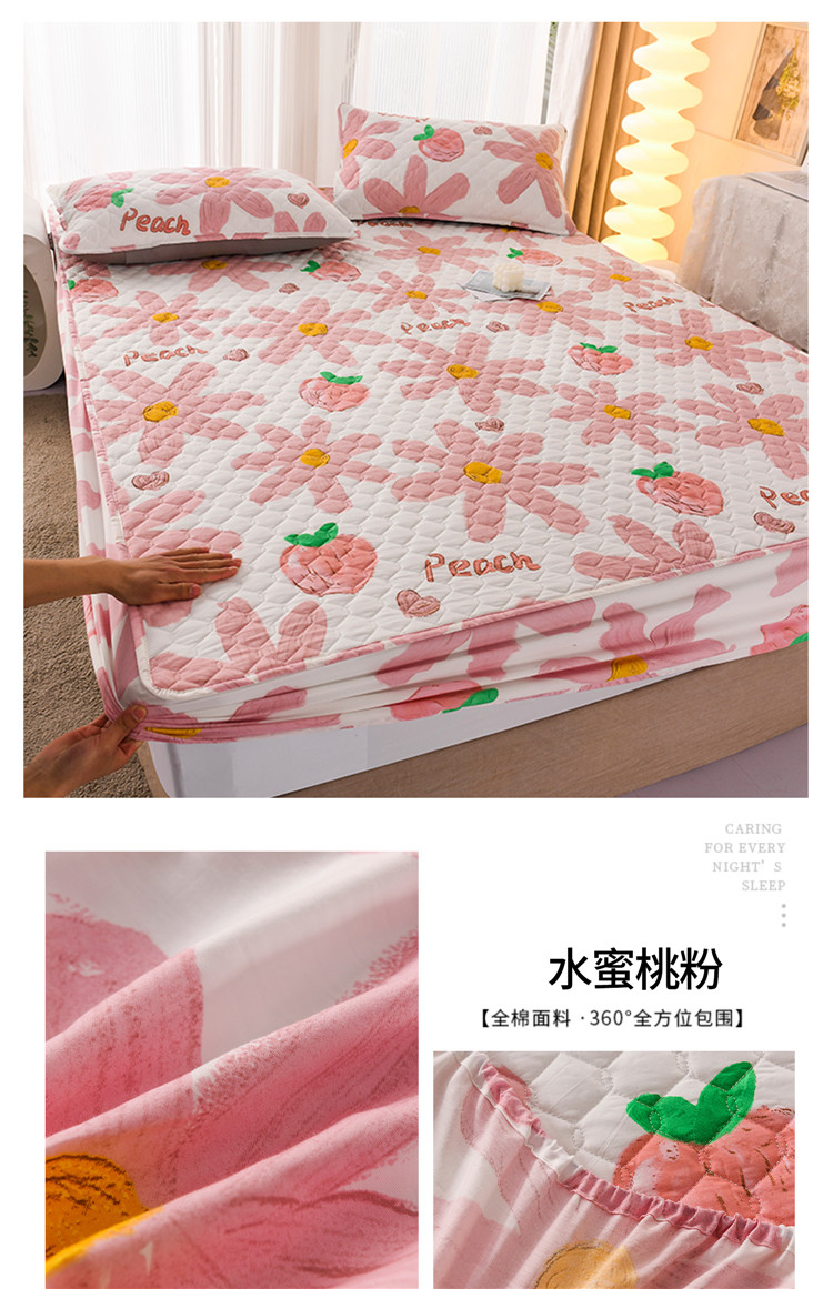 九亭 2023新款A类纯棉夹棉床笠 水蜜桃-粉