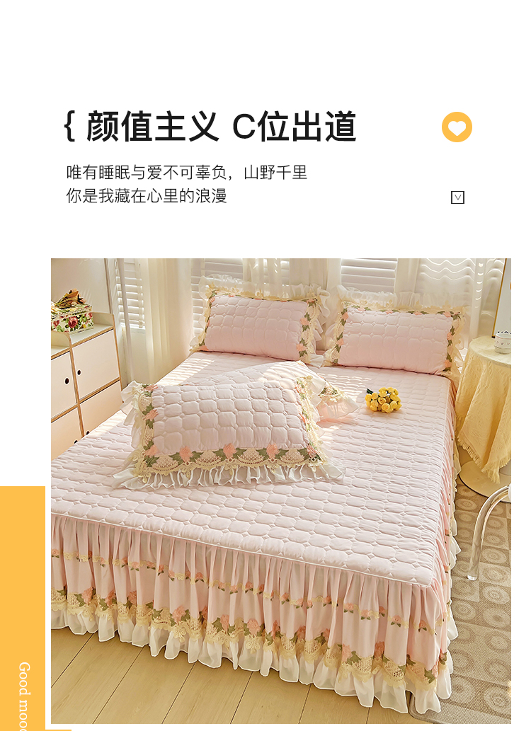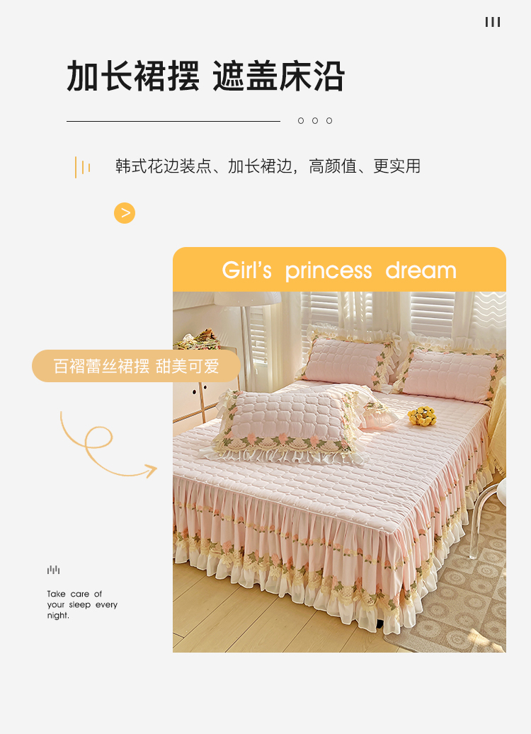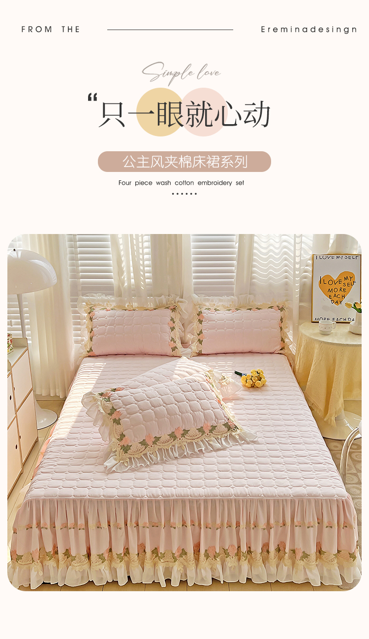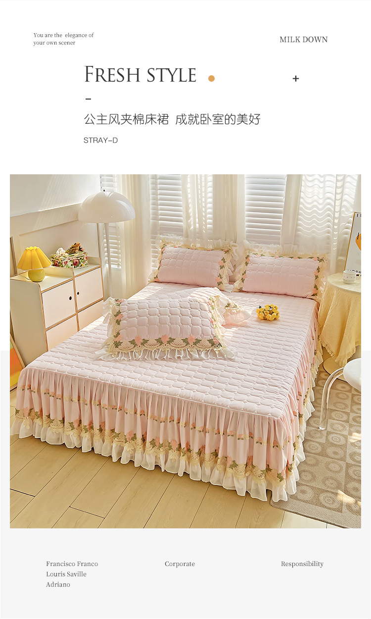 当前位置: 91家纺网 > 商品网购 > 床品套件 > 三件套 > 罗艺轩 2024新款夹棉床裙施华洛系列三件套 施华洛-浅粉