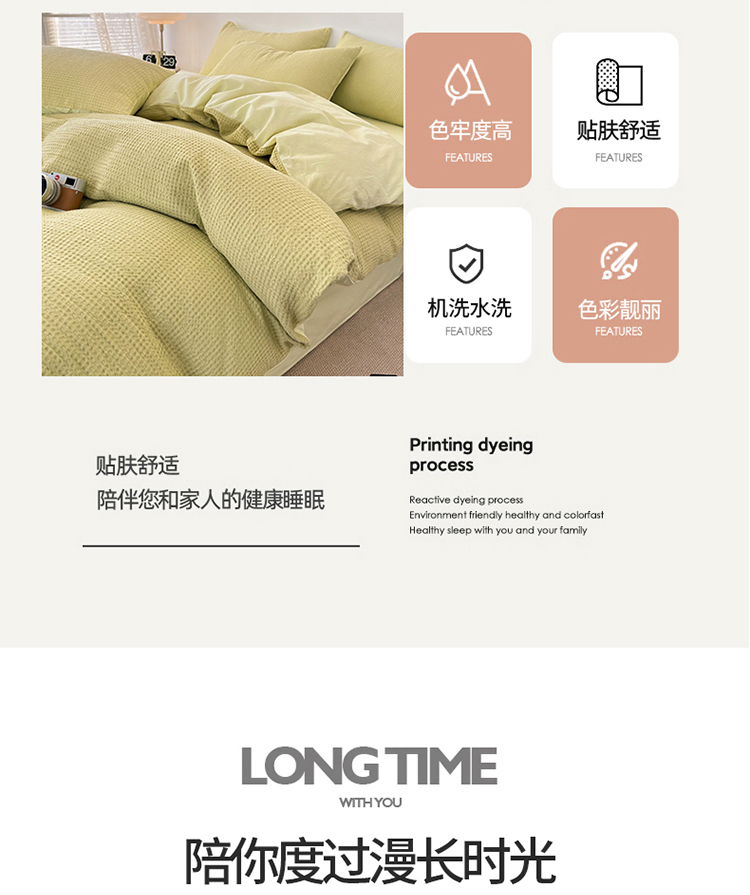 商品名称:雅萱 2023新款华夫格四件套-普通款 抹茶绿