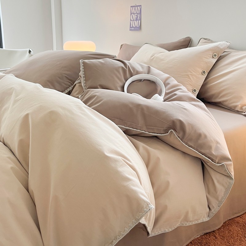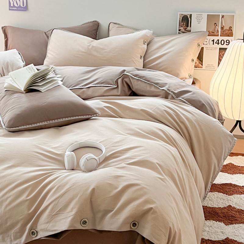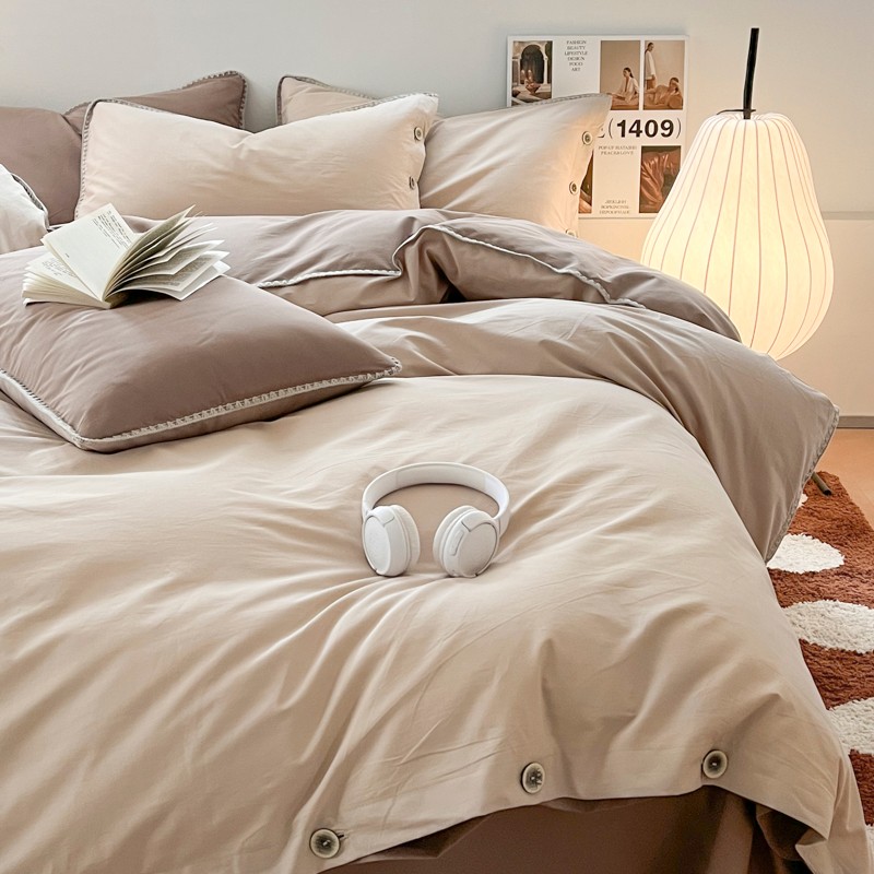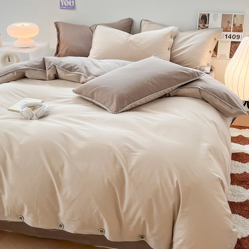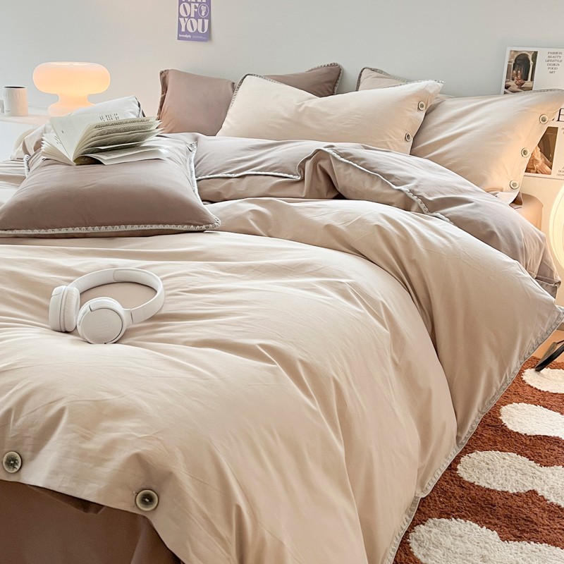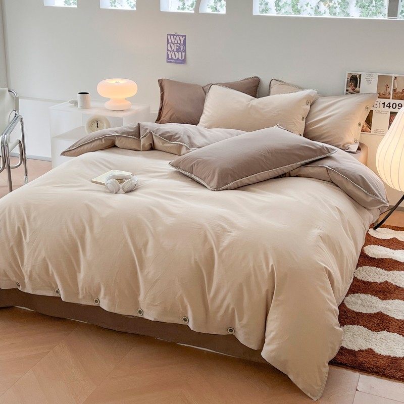 当前位置: 91家纺网 > 商品网购 > 床品套件 > 四件套 > 全棉普通四件套 > 蜜柚 2024新款A类全棉40支纯色纽扣款水洗棉四件套 班尼咖