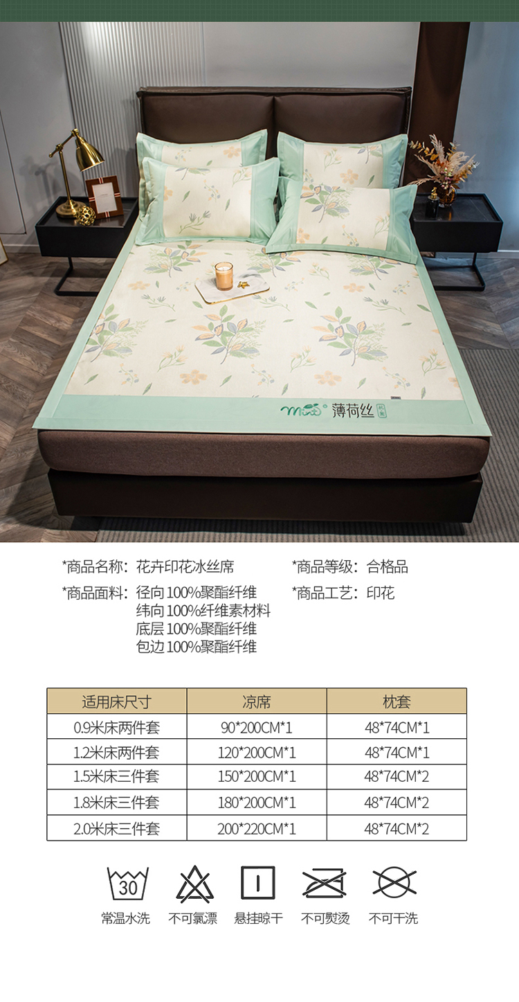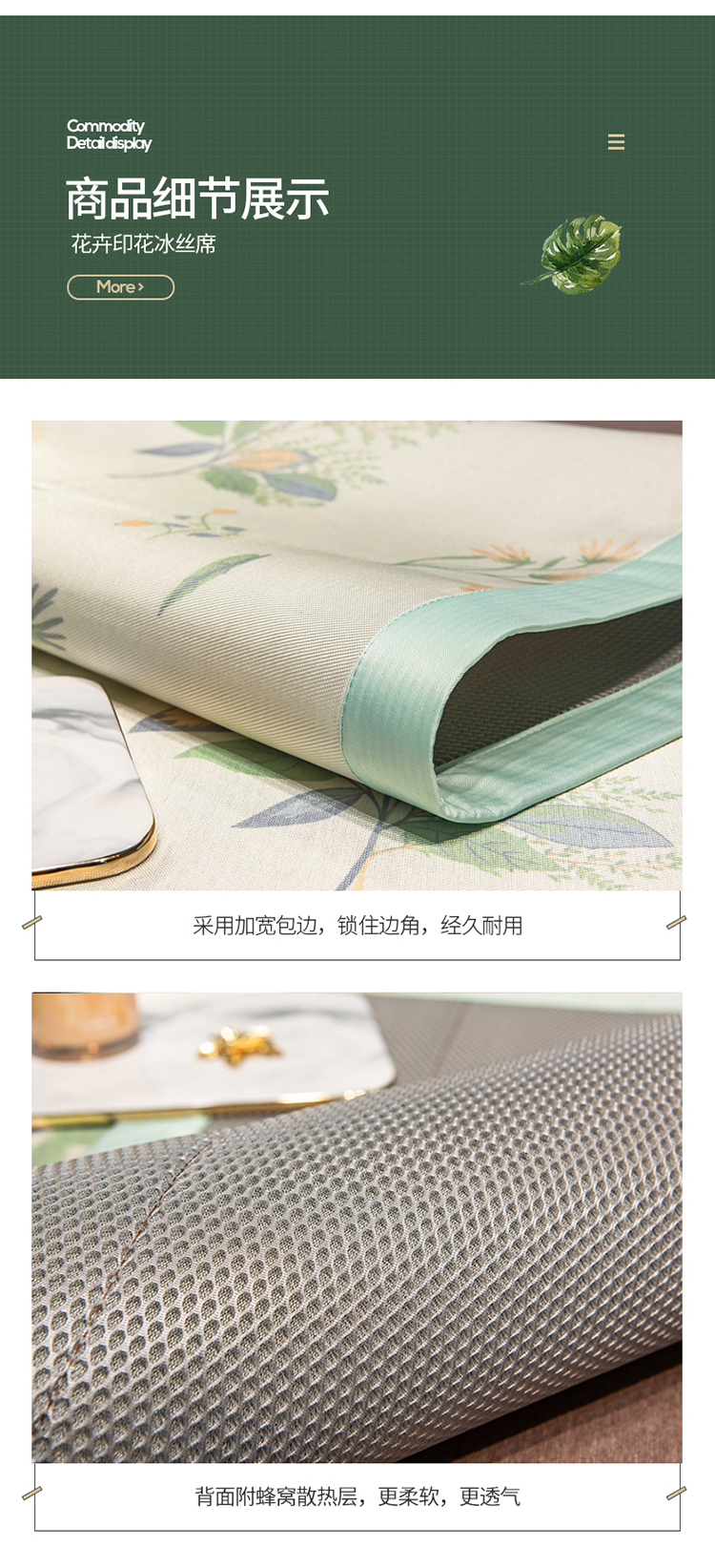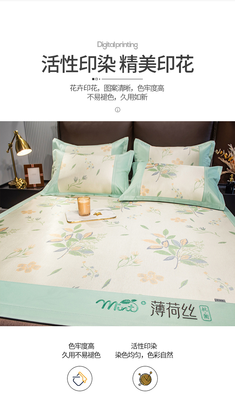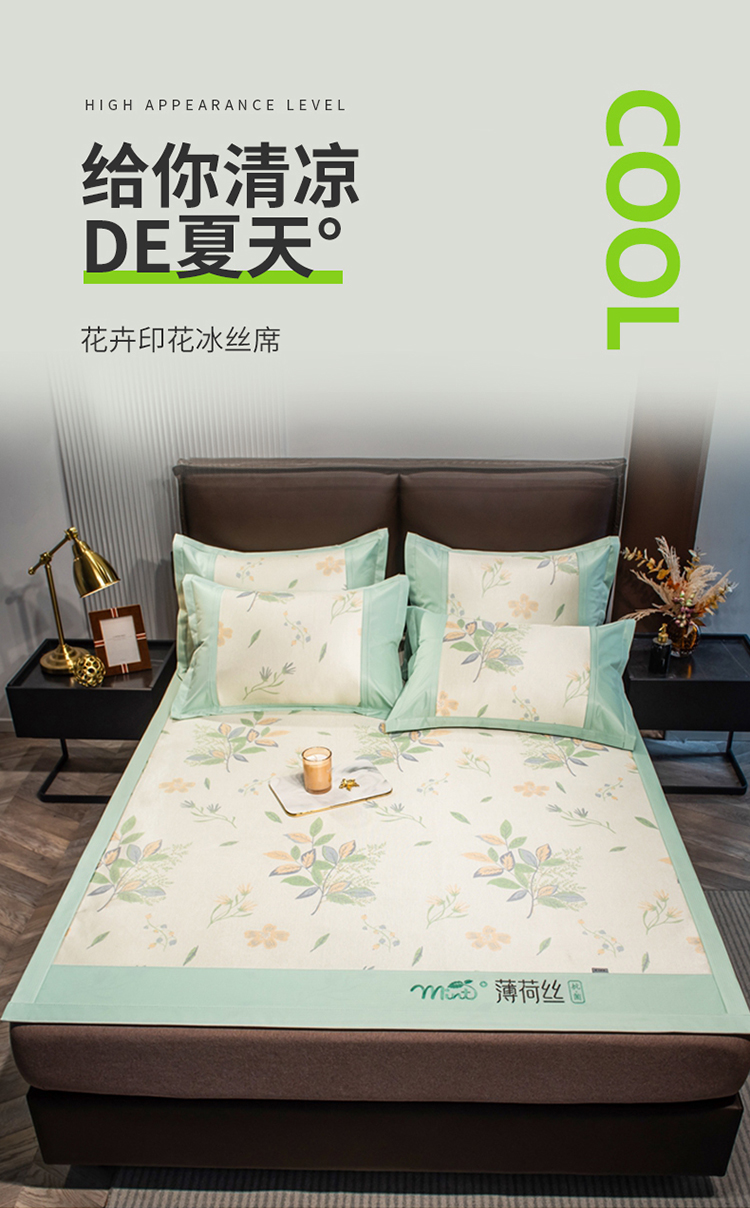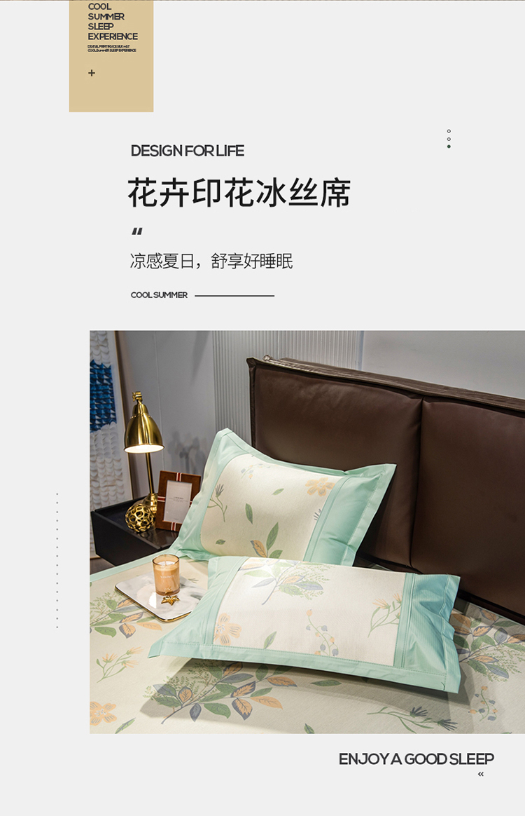 商品名称:全季家居2023年新款A类抗菌数码印花花卉系列冰丝席 春意绿