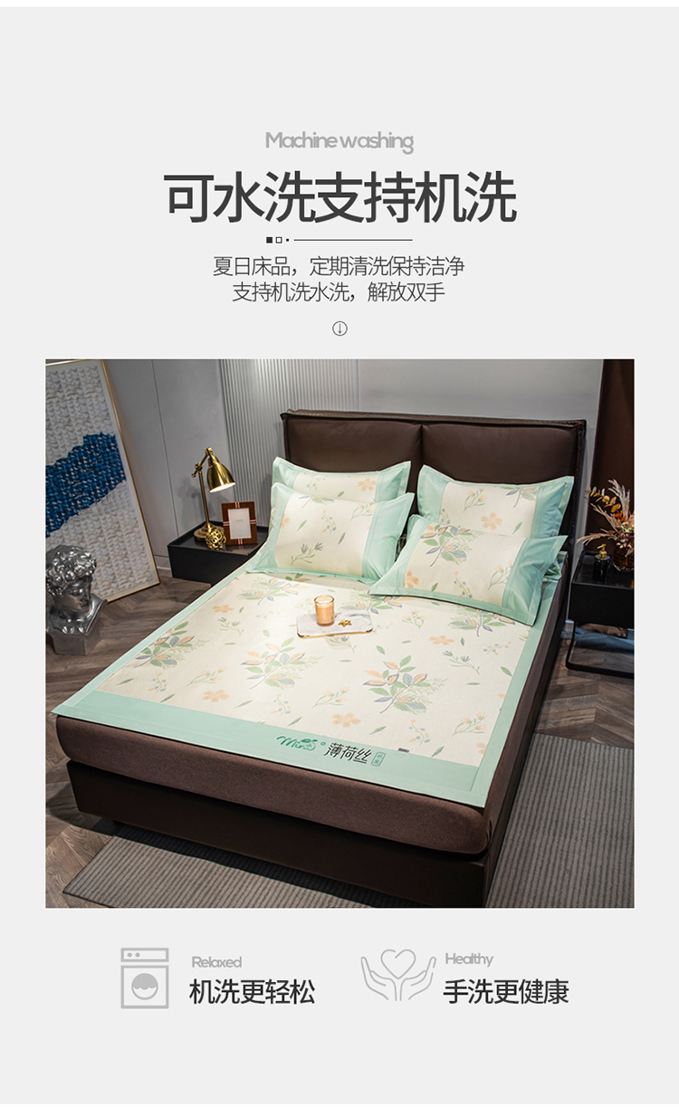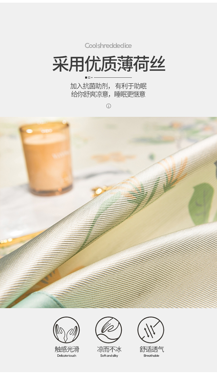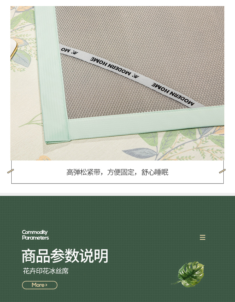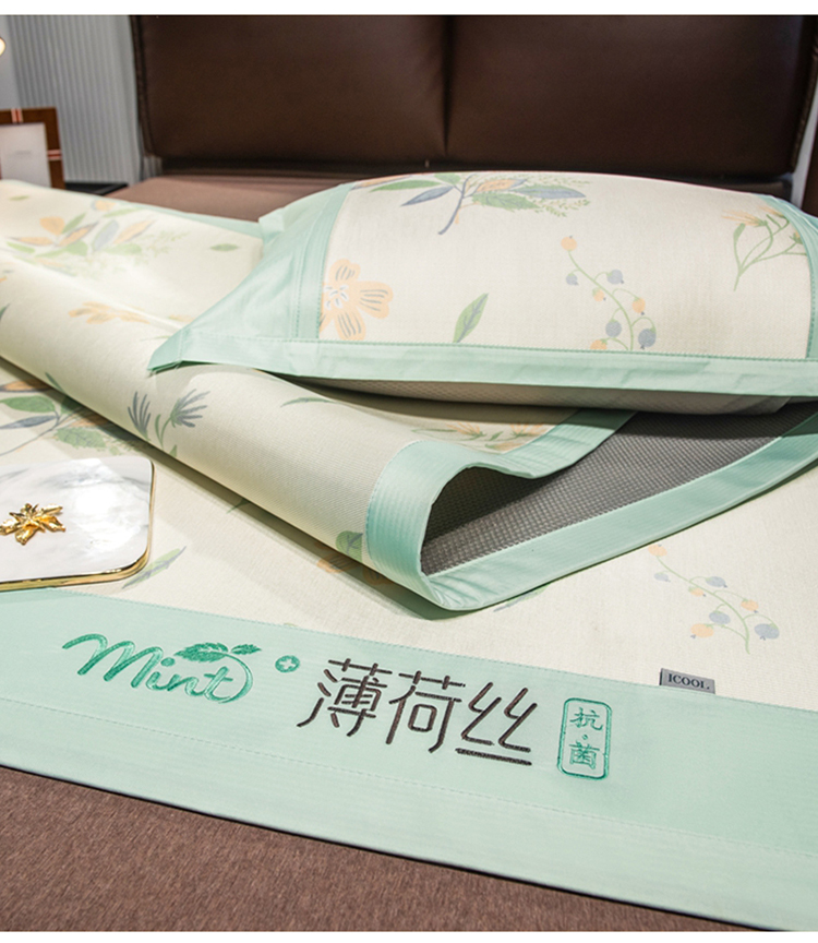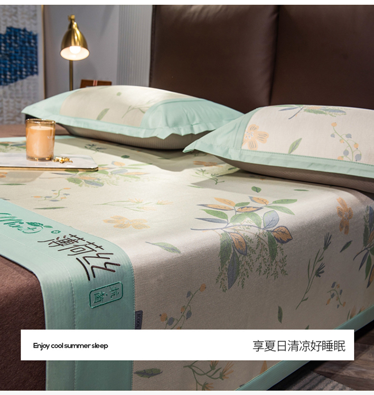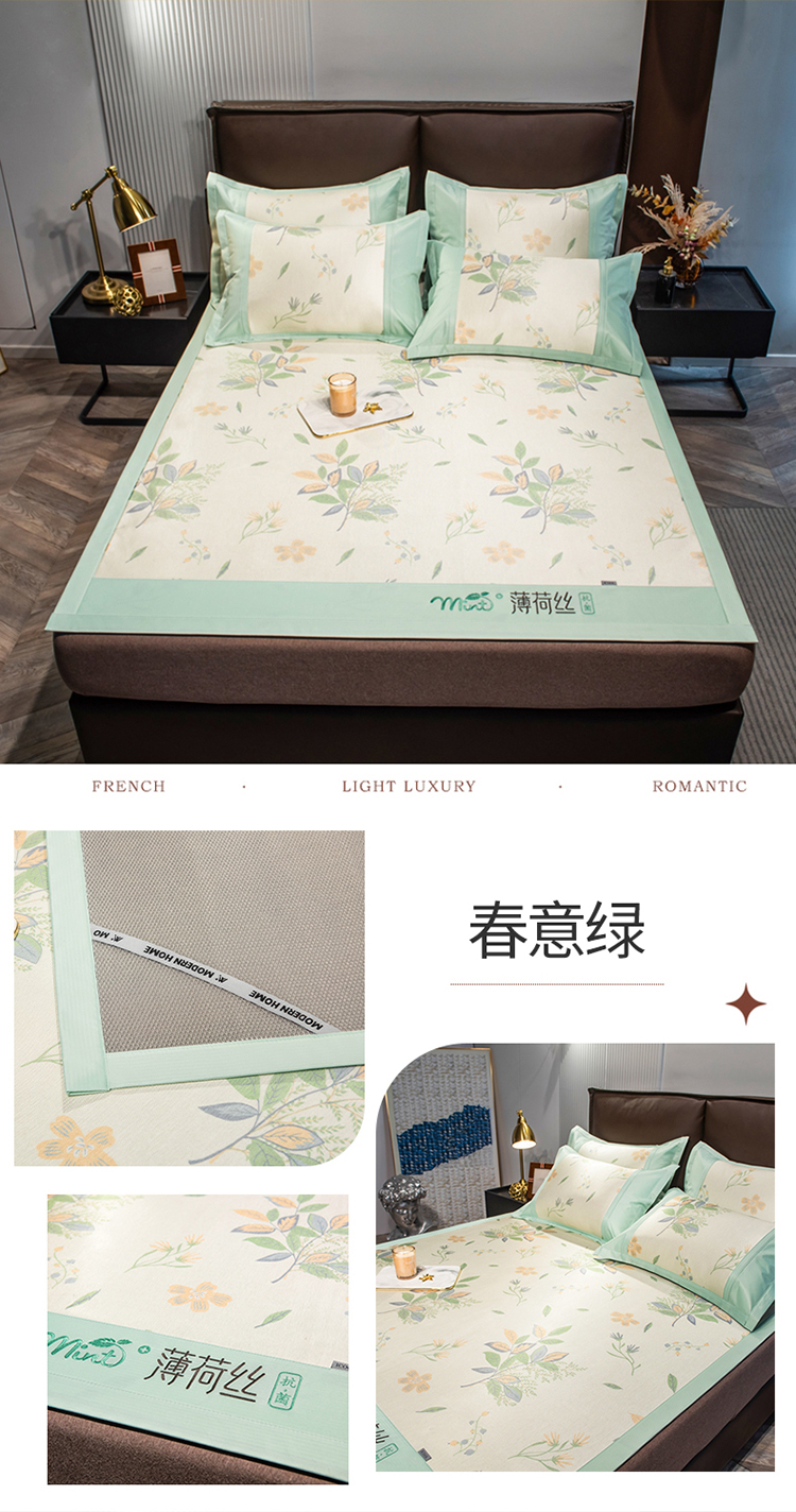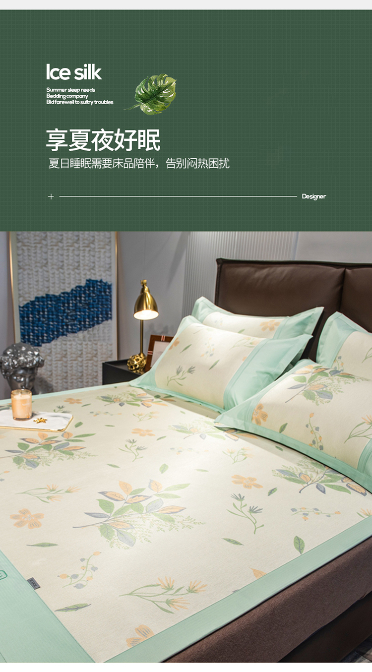 商品名称:全季家居2023年新款A类抗菌数码印花花卉系列冰丝席 春意绿