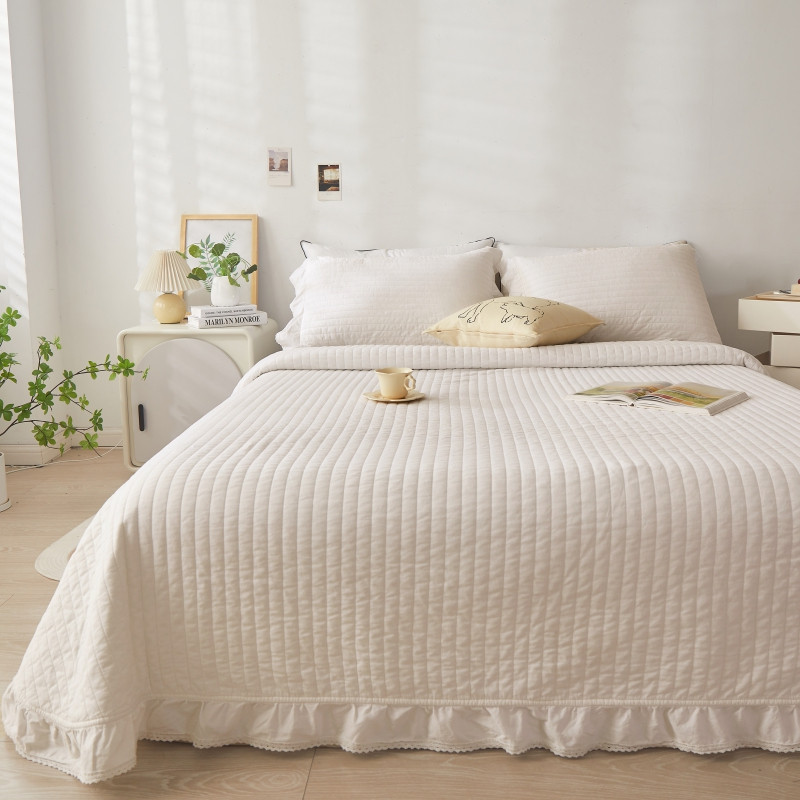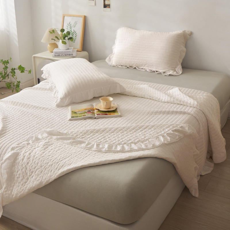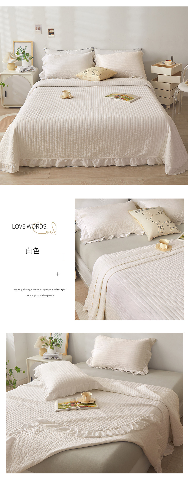 (总)上喜 2025新款全棉砂洗床盖新升级第五代,白色,湖蓝,奶油米,深灰,深咖
