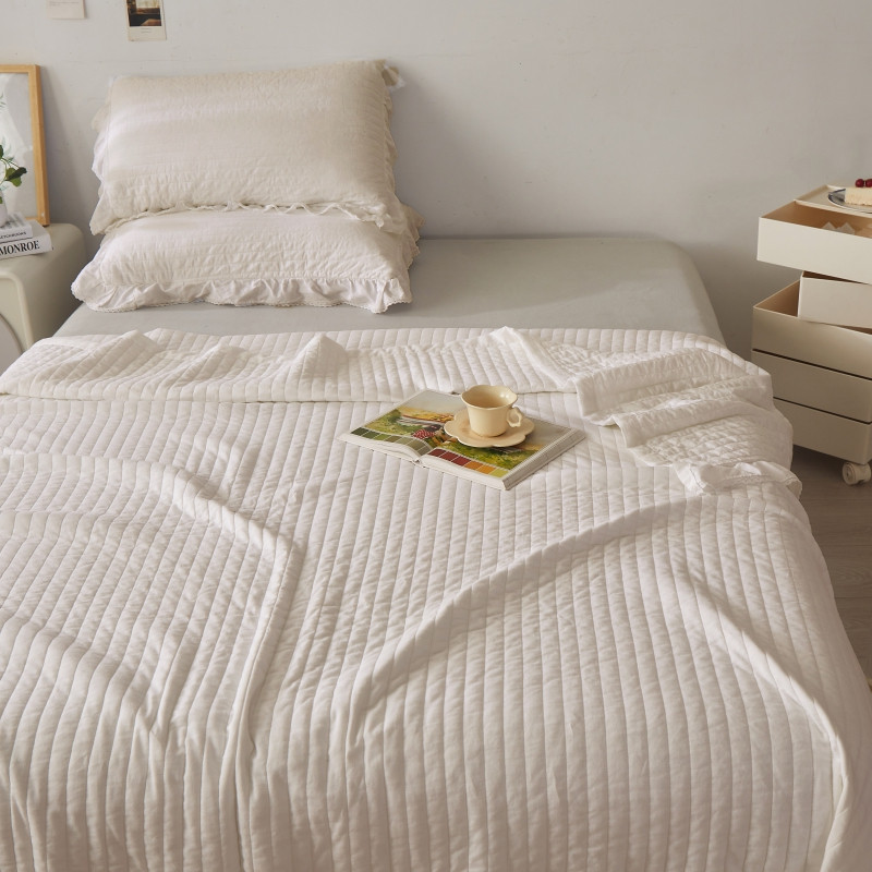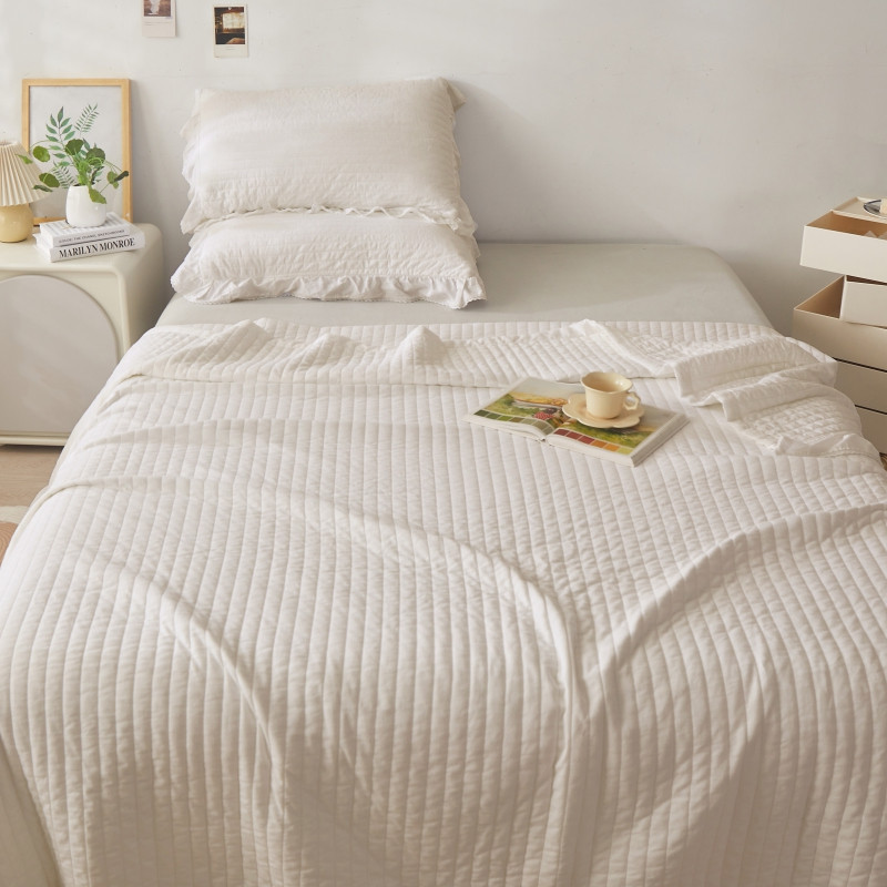(总)上喜 2025新款韩国砂洗床盖+多功能夏被,白色,粉色,黄色,灰色,紫色