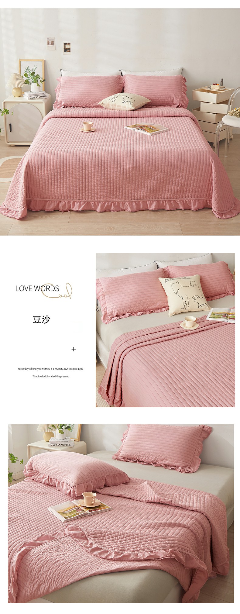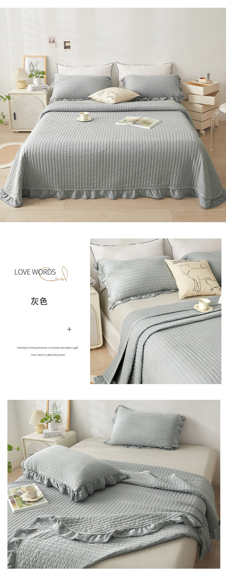 (总)上喜2025新款韩国全棉砂洗床盖系列,粉色,黄色,灰色,绿色,紫色