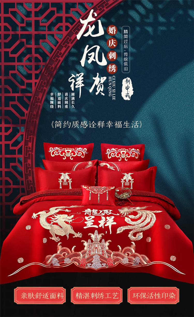 当前位置: 91家纺网 > 商品网购 > 床品套件 > 四件套 > 婚庆四件套 > 2025新款亲肤棉绣花刺绣婚庆四件套 龙凤祥贺