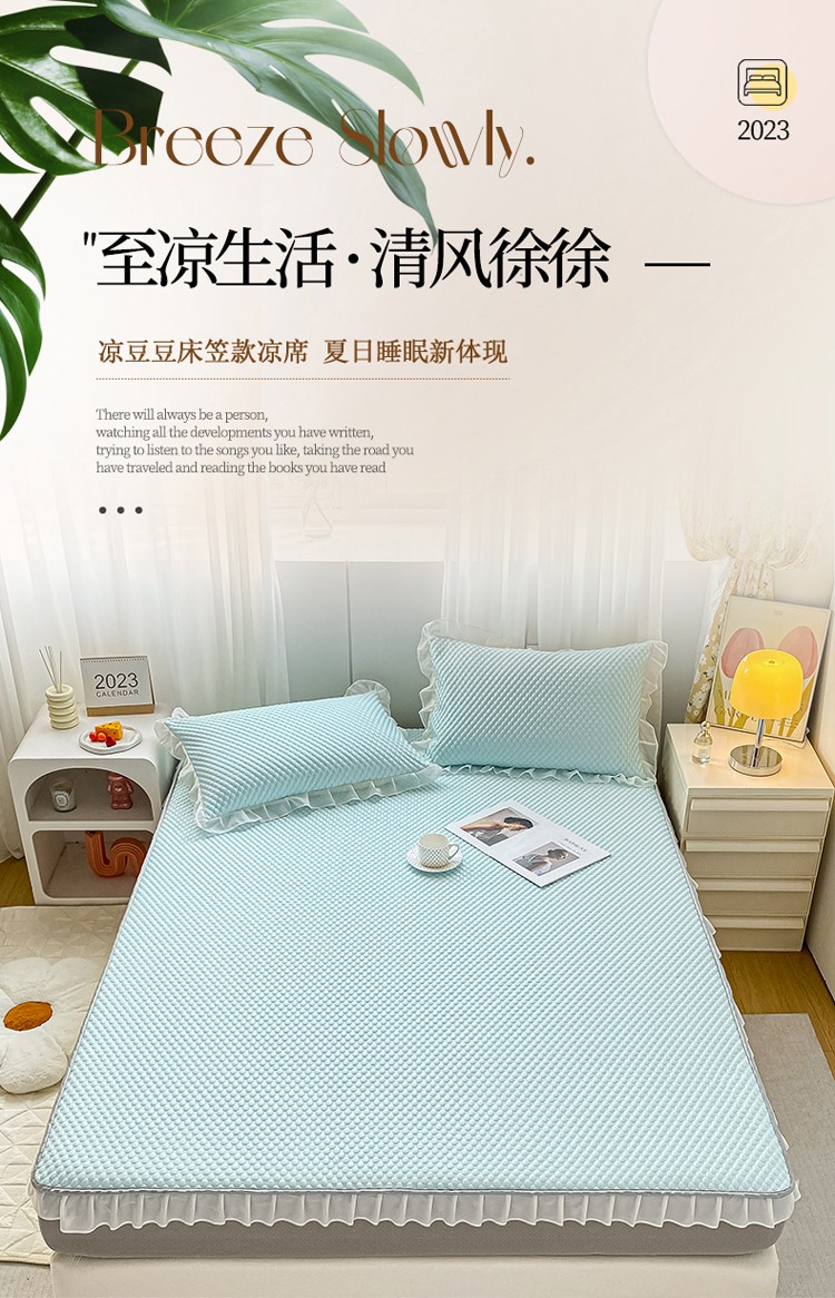 (总)米莱家纺 2025新款冰豆豆床裙款凉席-蝴蝶结系列,蝴蝶结-粉,蝴蝶结-灰,蝴蝶结-绿,蝴蝶结-天蓝,蝴蝶结-湖兰