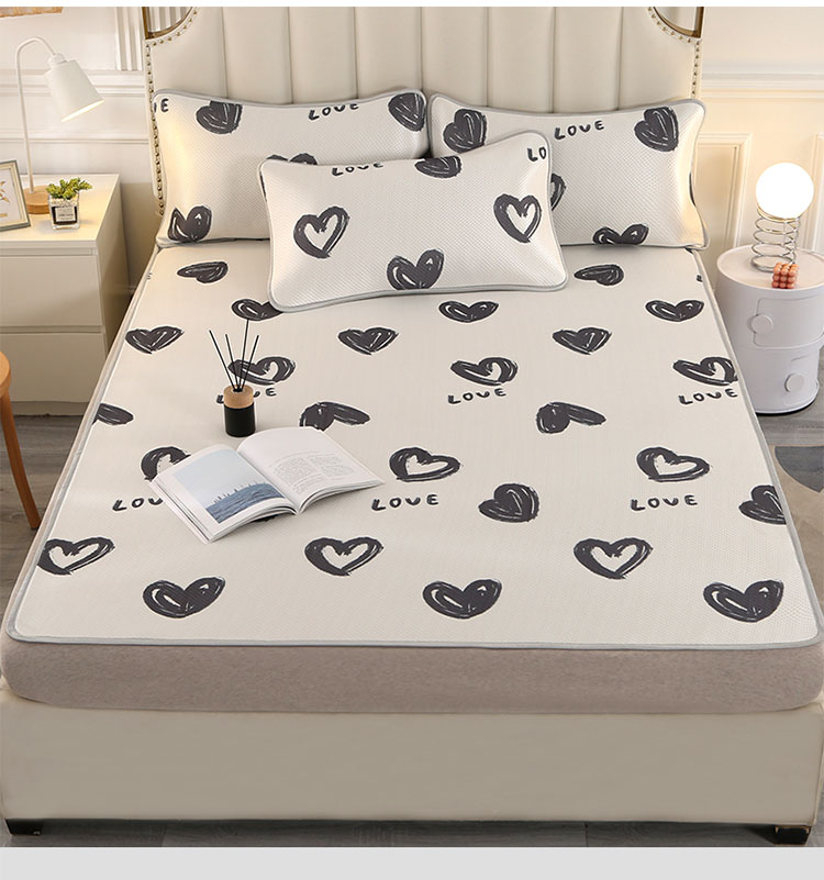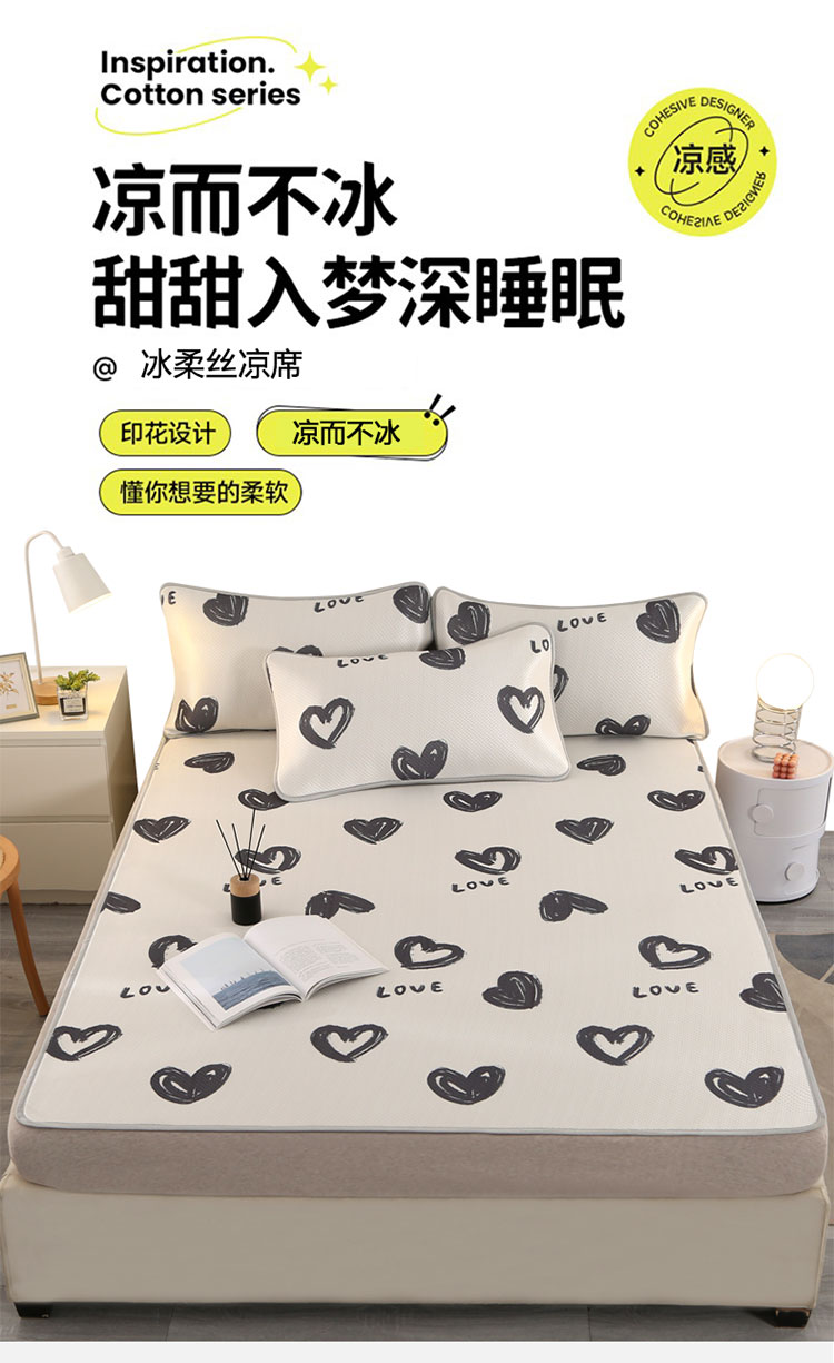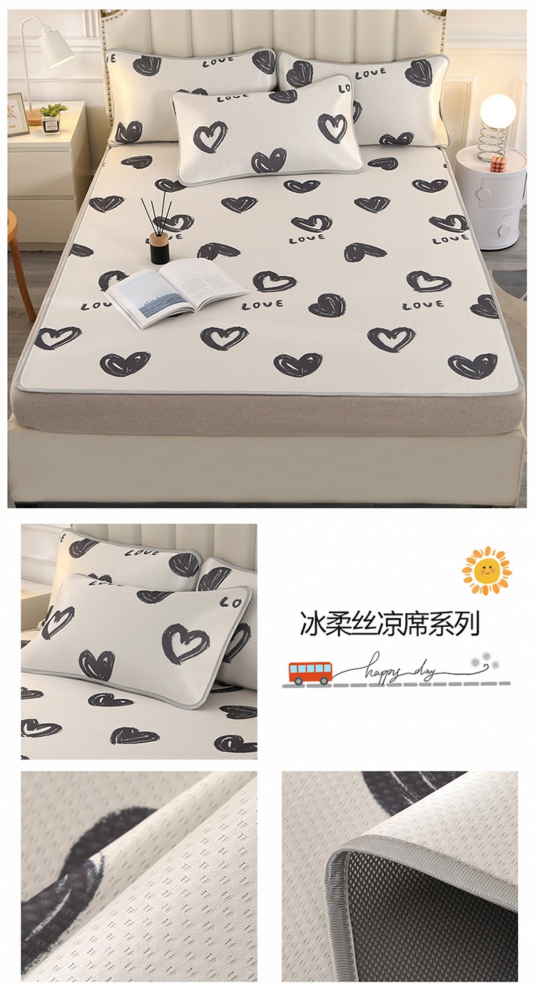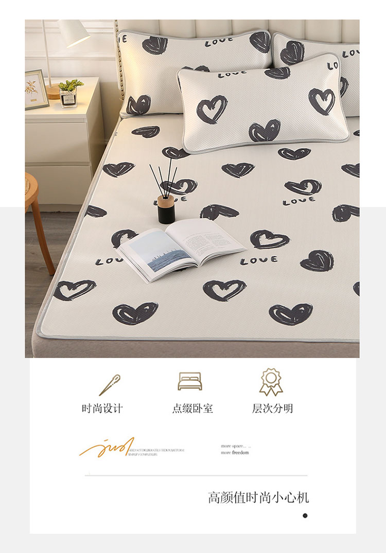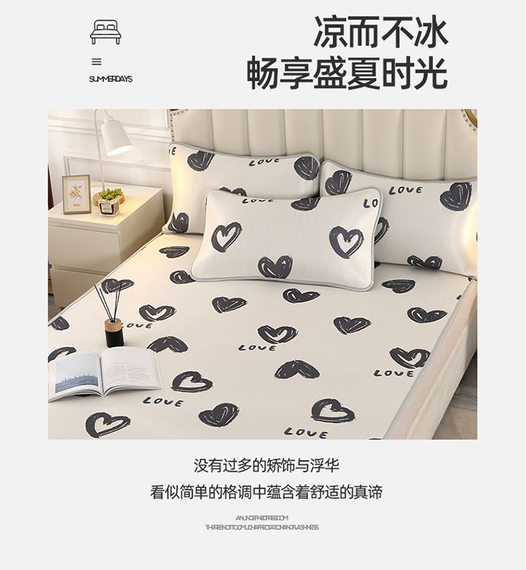 商品名称:星窝 2023新款冰柔丝凉席三件套 心心相印