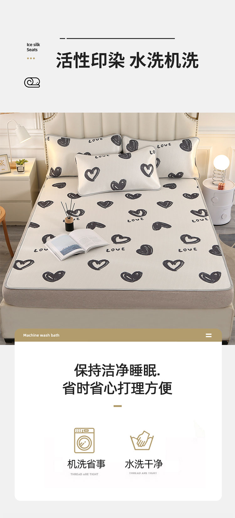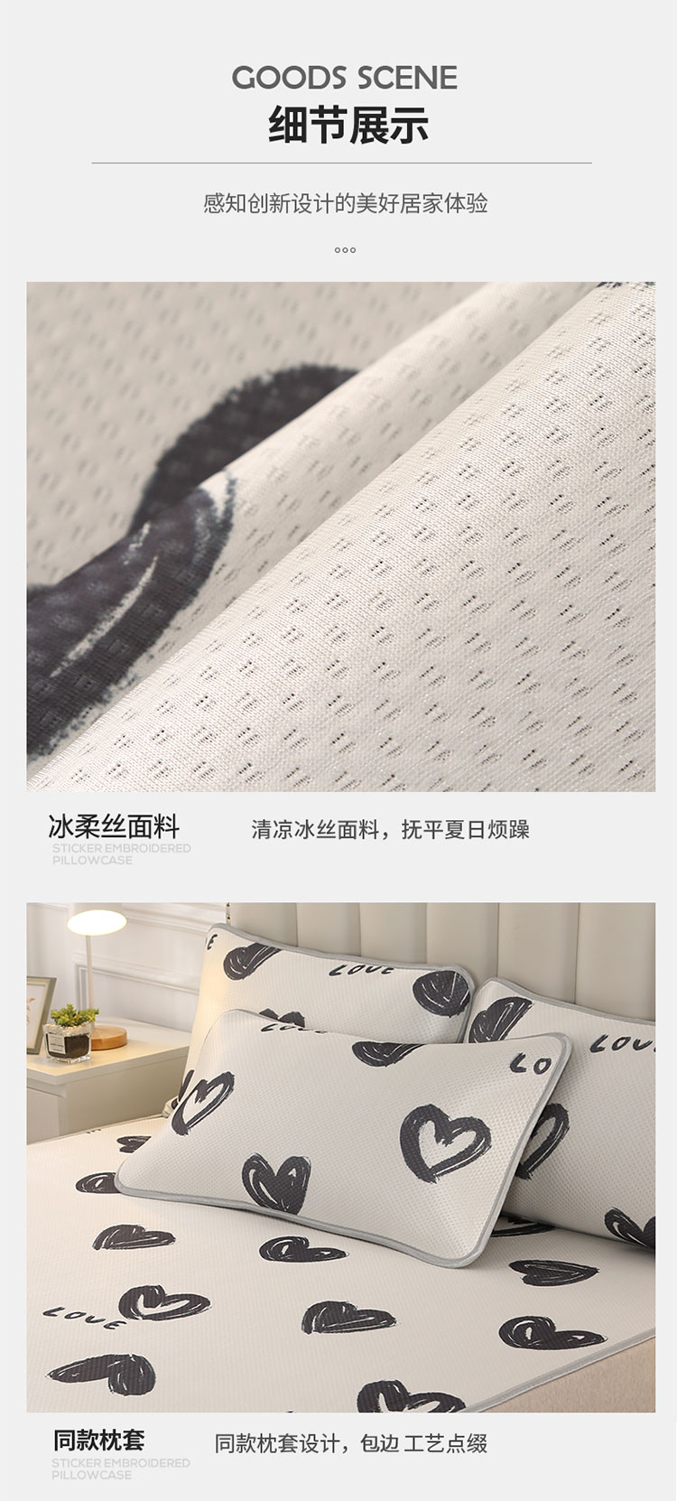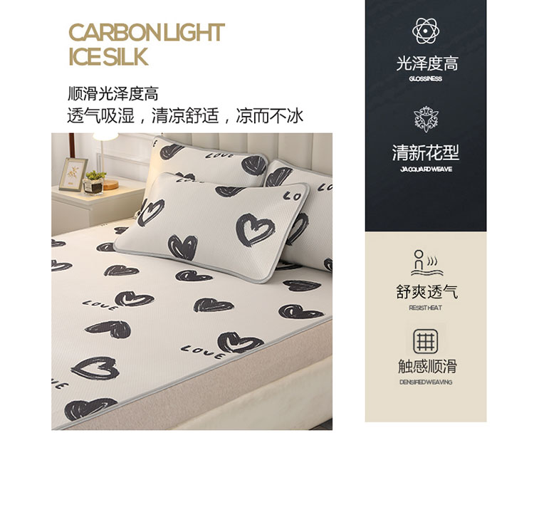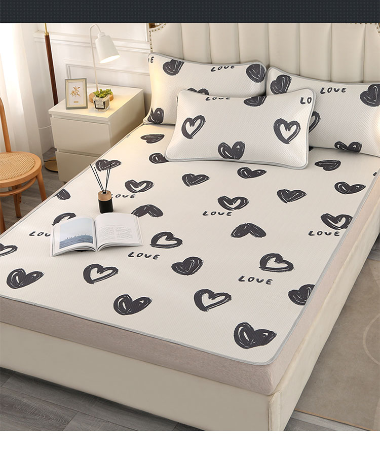 商品名称:星窝 2023新款冰柔丝凉席三件套 心心相印