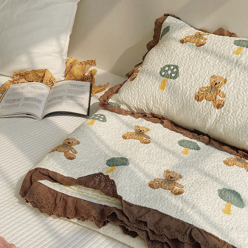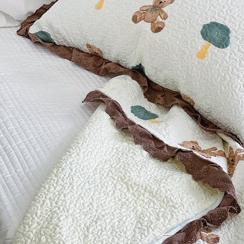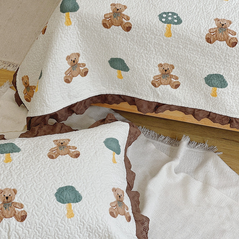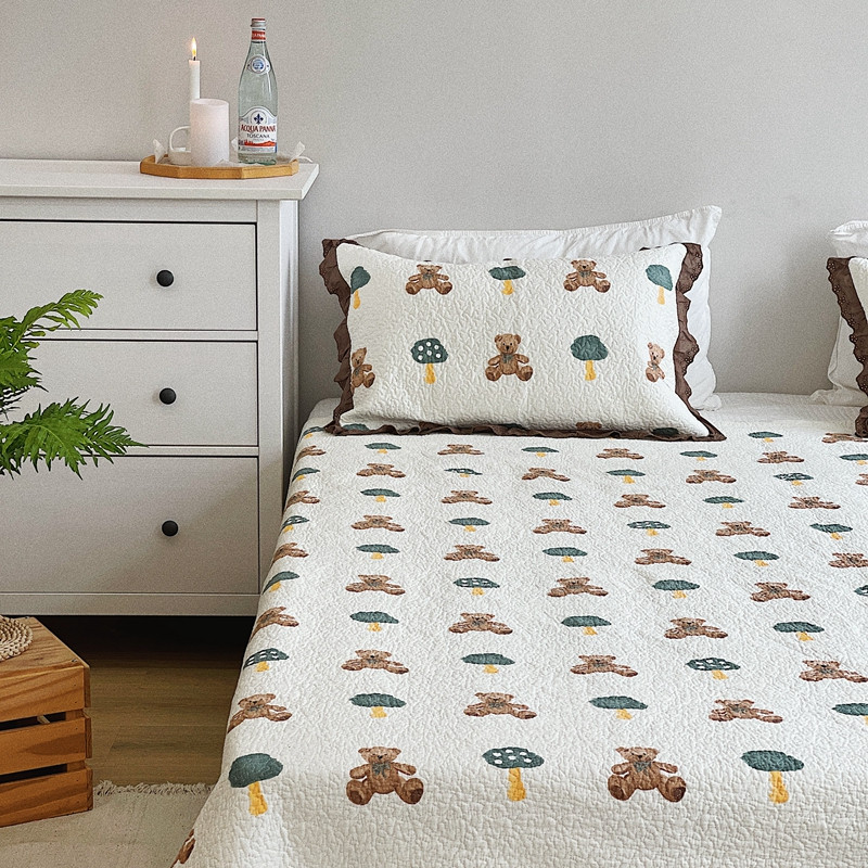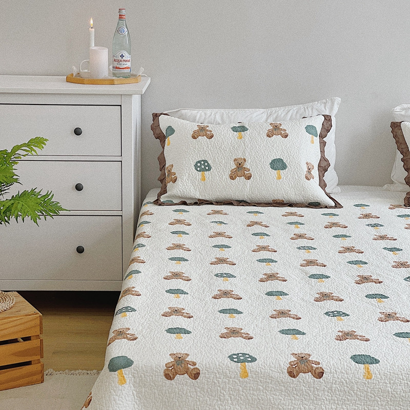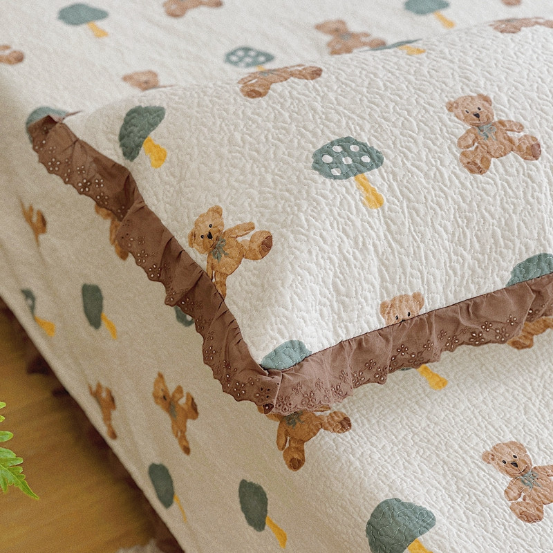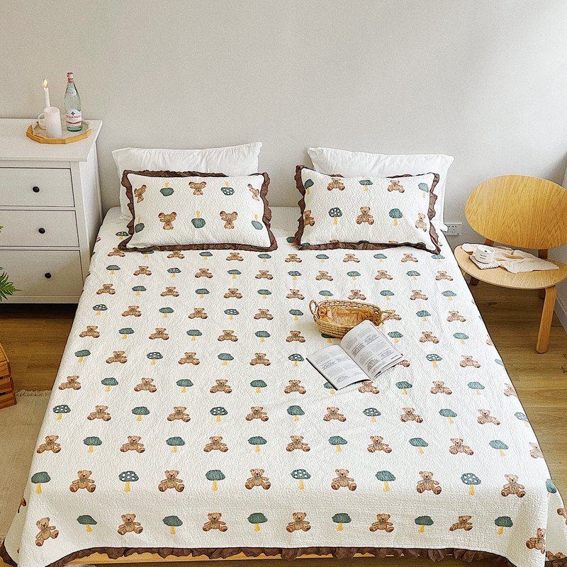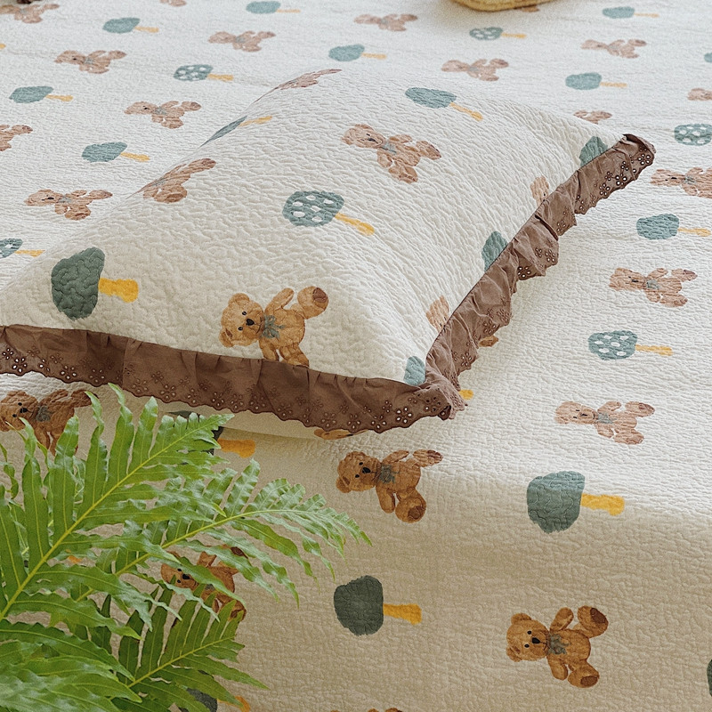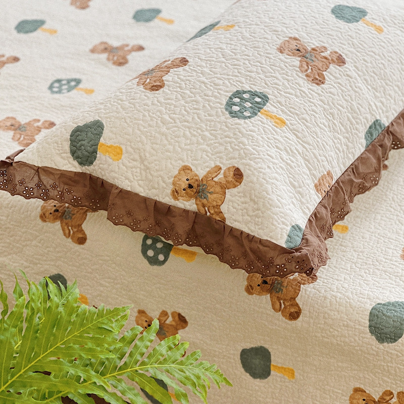 有货 2023新款全棉棉花酵素纱洗床盖三件套 熊仔
