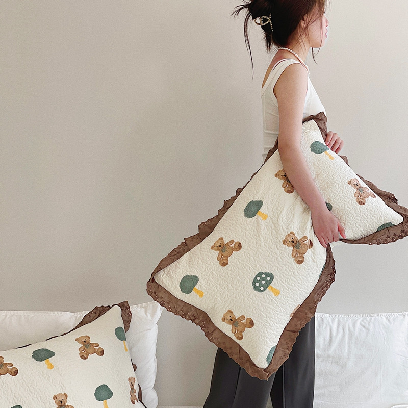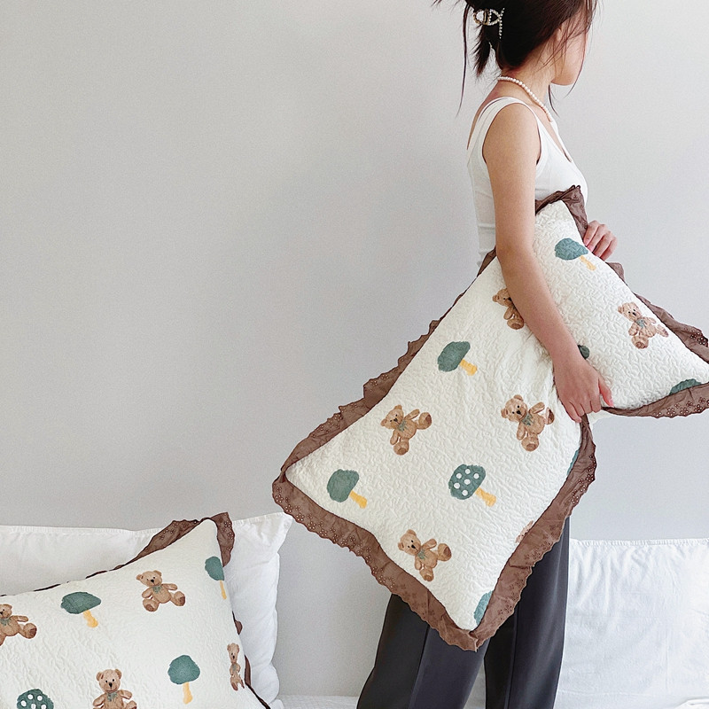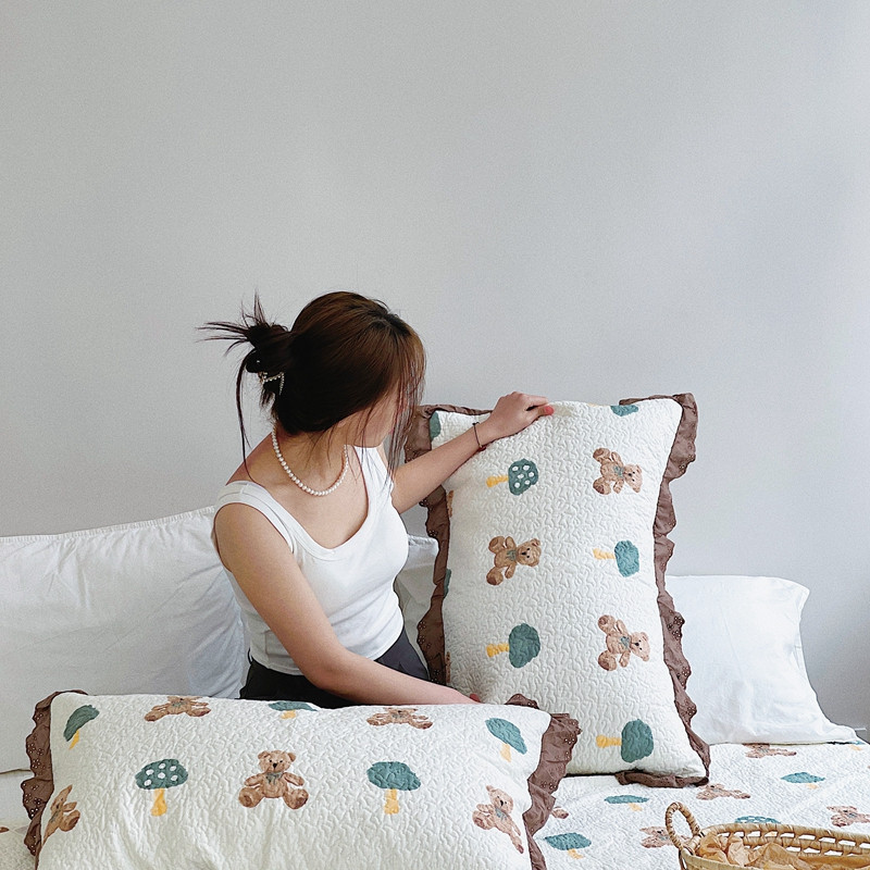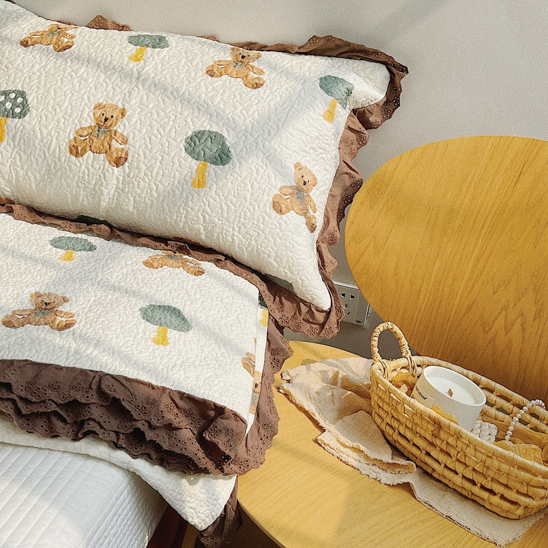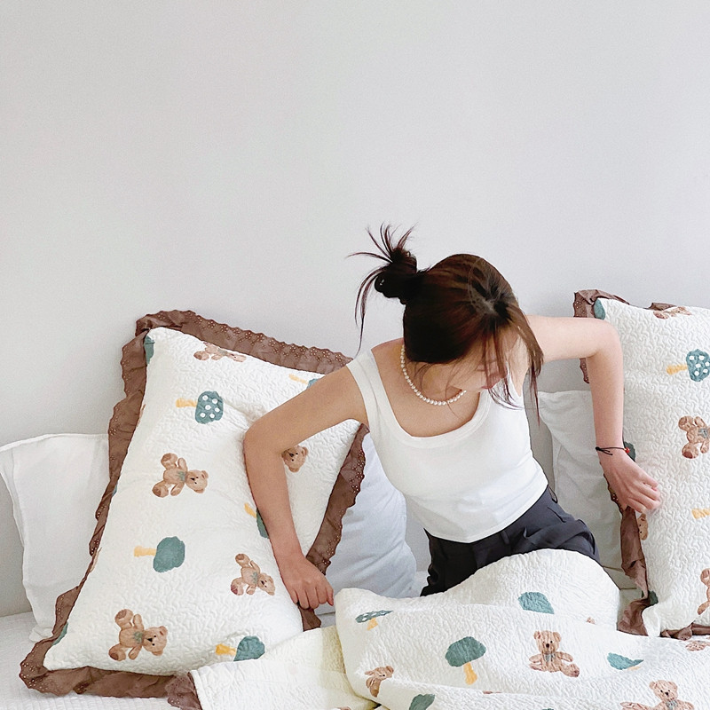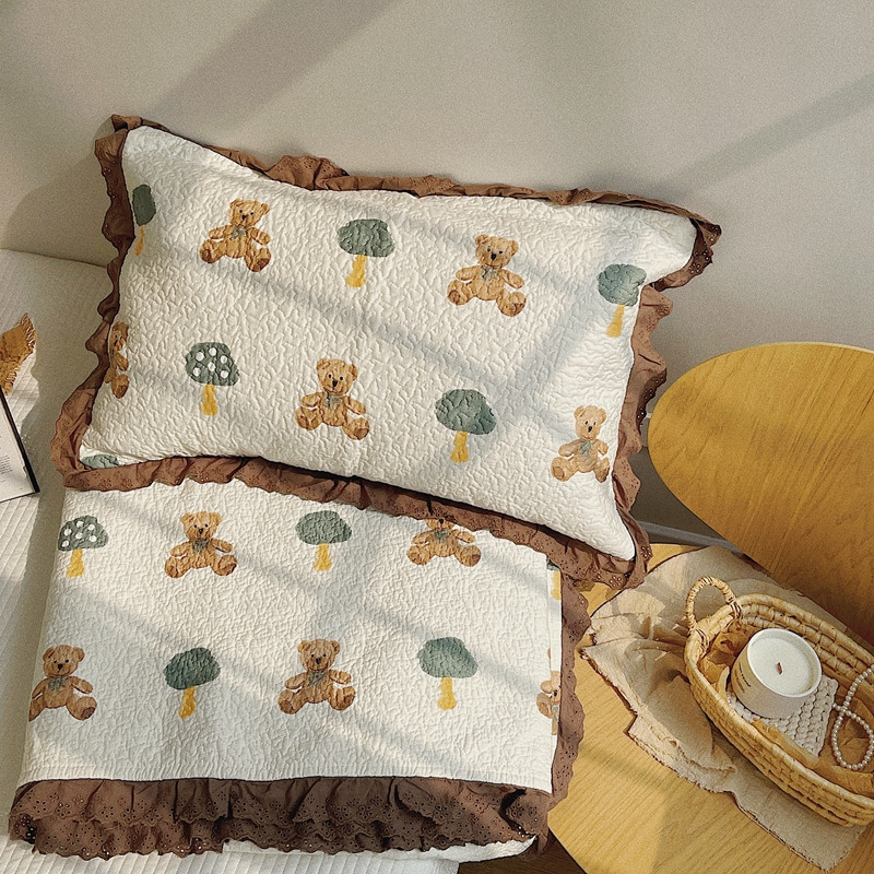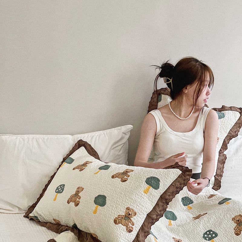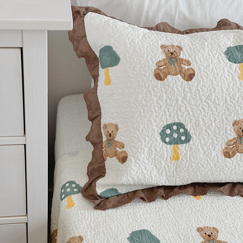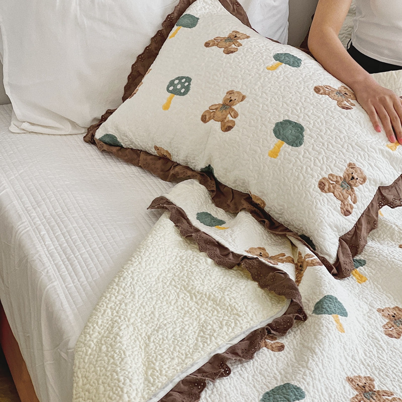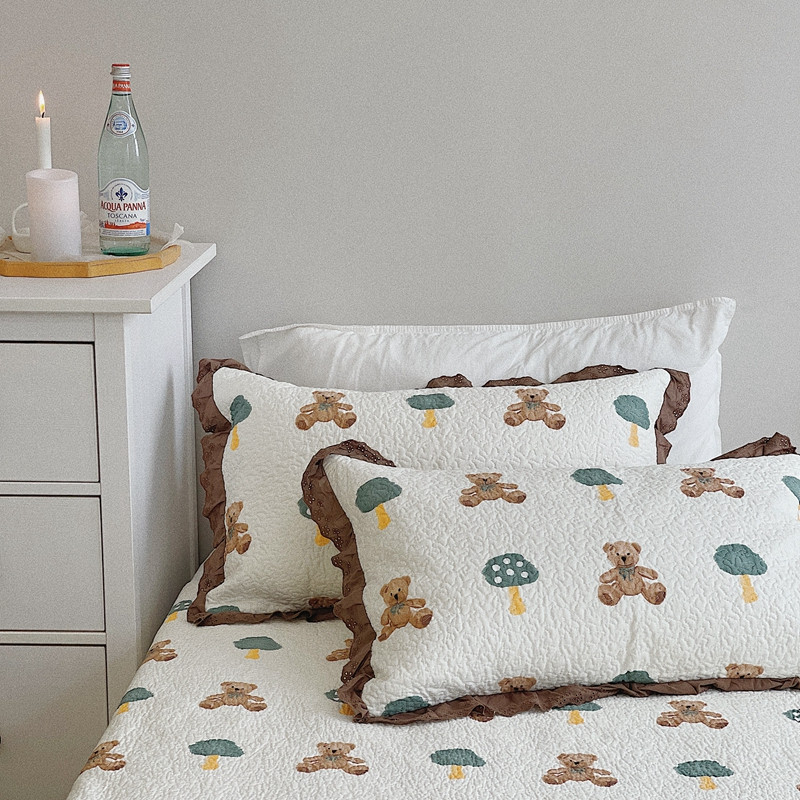 有货 2023新款全棉棉花酵素纱洗床盖三件套 熊仔