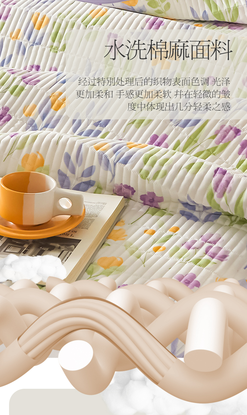 150*230cm【0.9-1.2床A类水洗棉麻床盖】