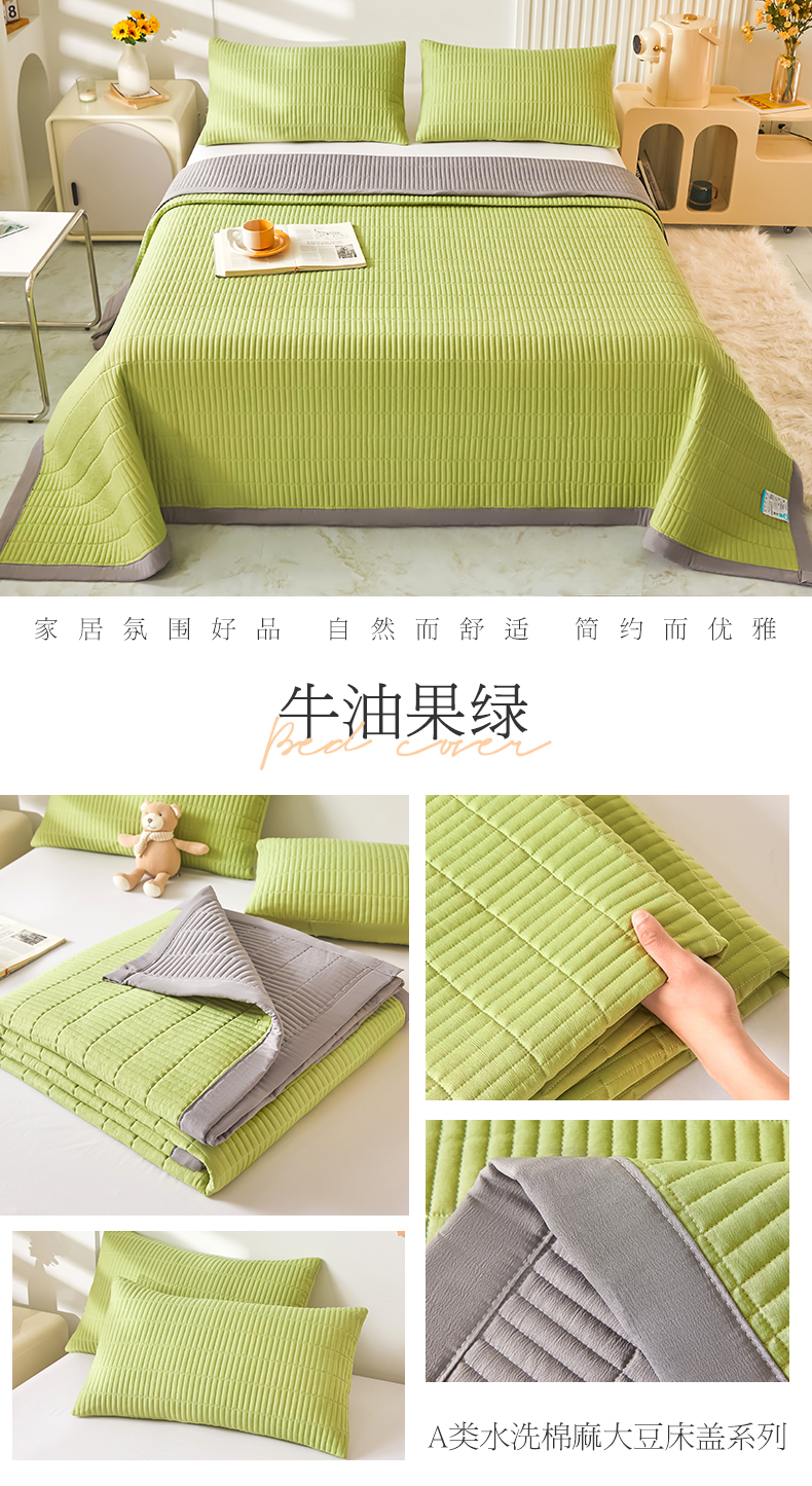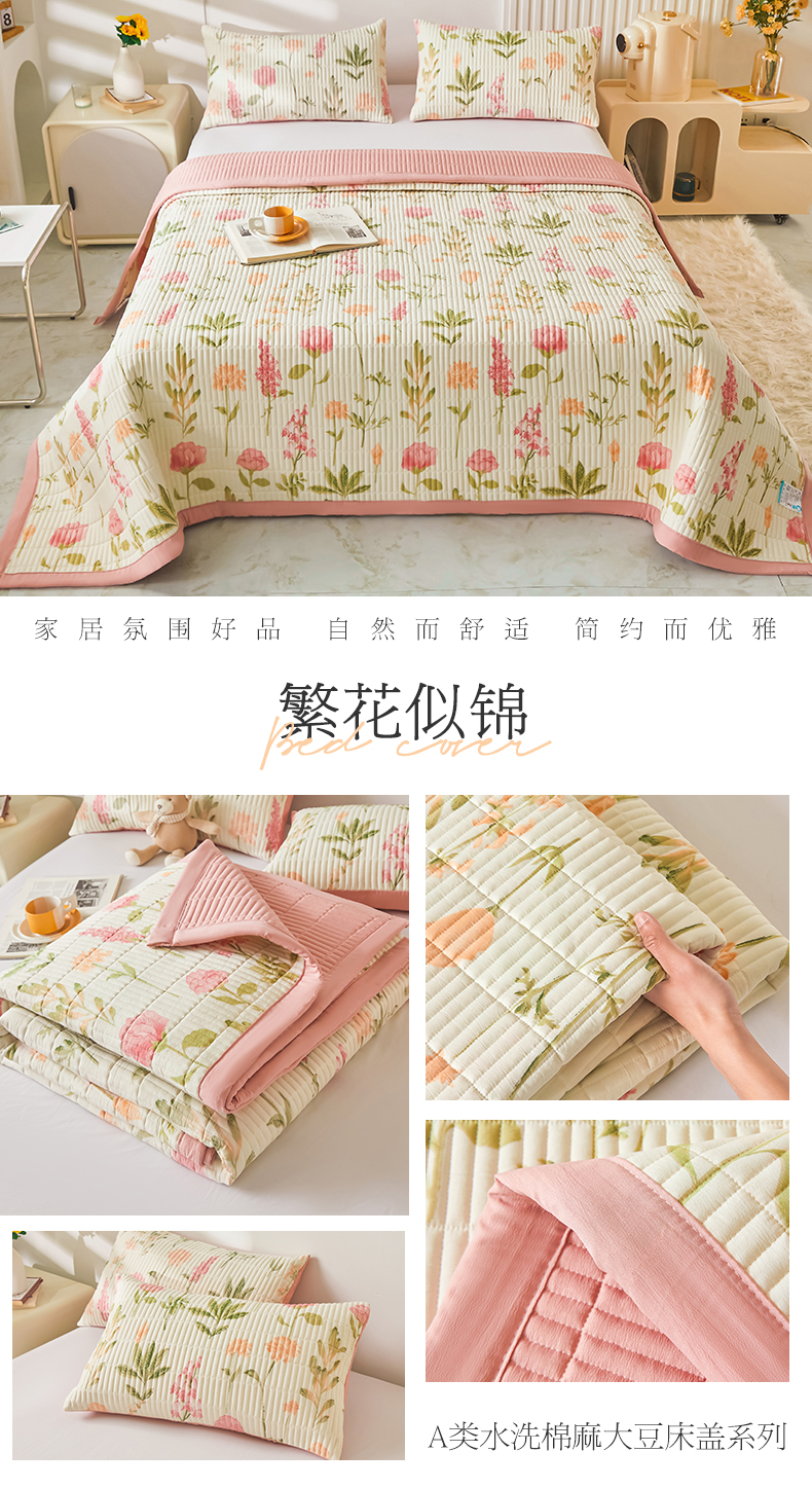 总 梦舒羽 水洗棉麻床盖大豆纤维夹棉加厚宿舍铺盖两用床单床裙保护垫