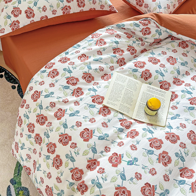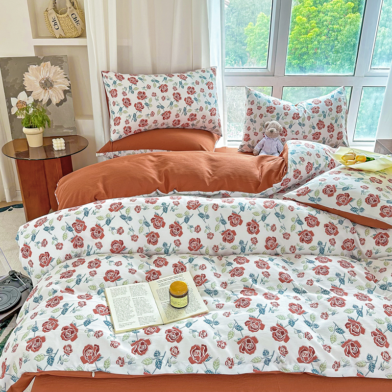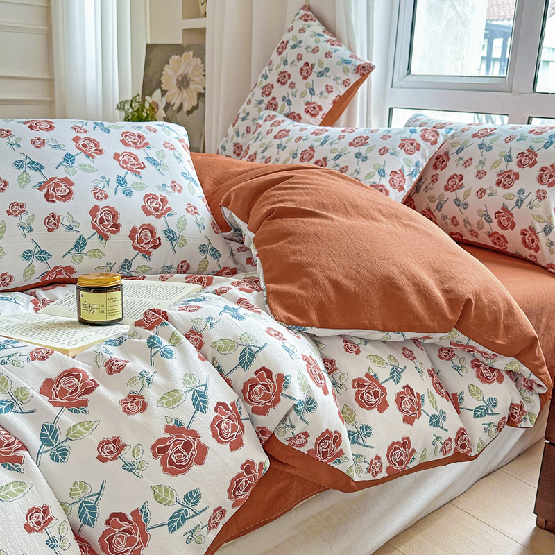 商品名称:美莱 2023直播爆款水洗棉麻四件套小清新套件可谈价 茶花开