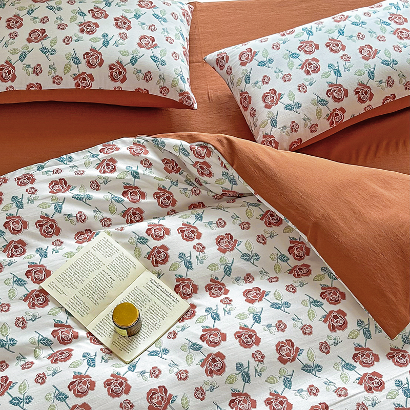 美莱 2023直播爆款水洗棉麻四件套小清新套件可谈价 茶花开