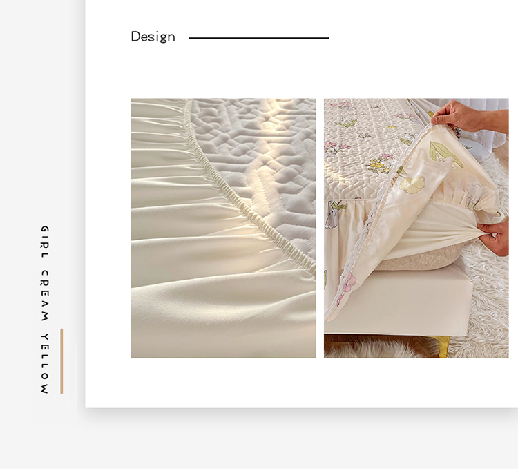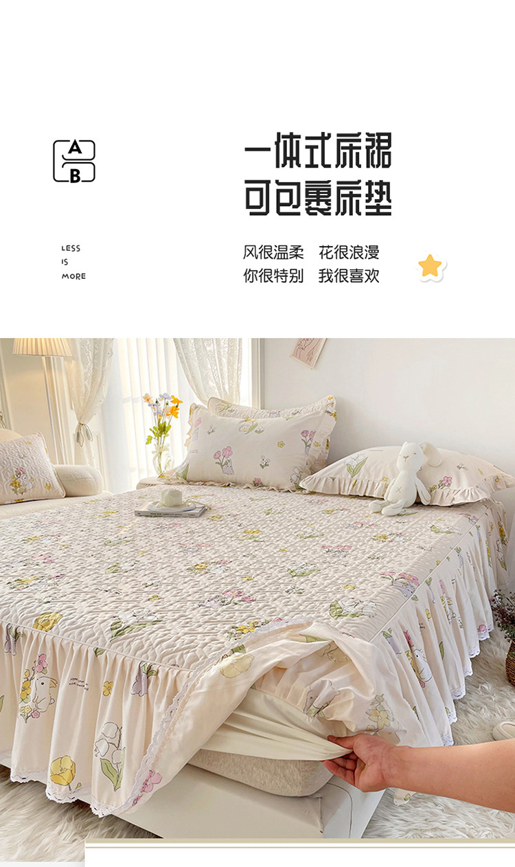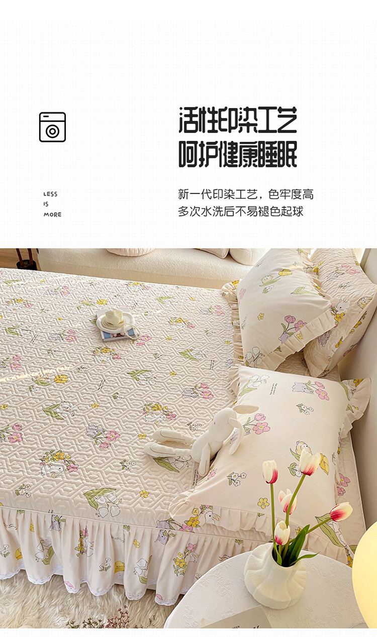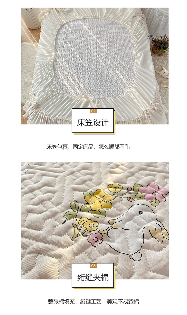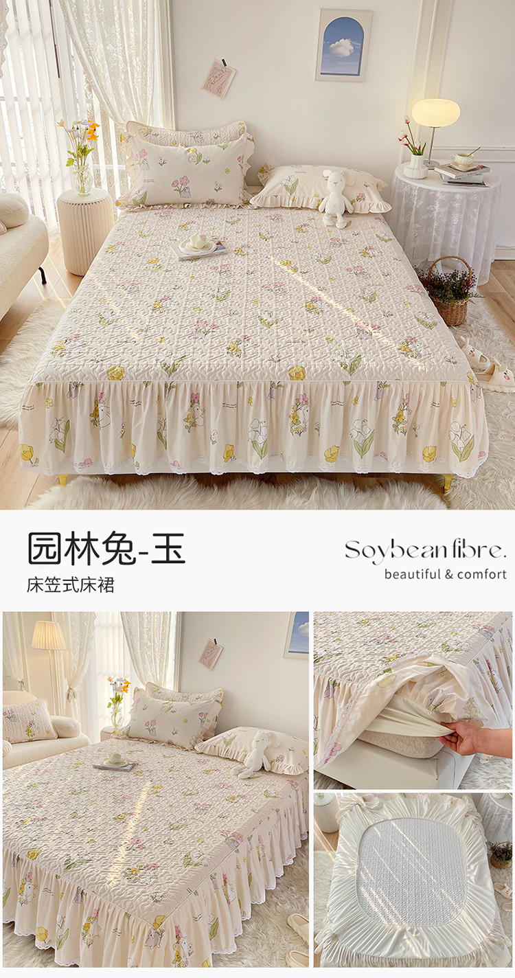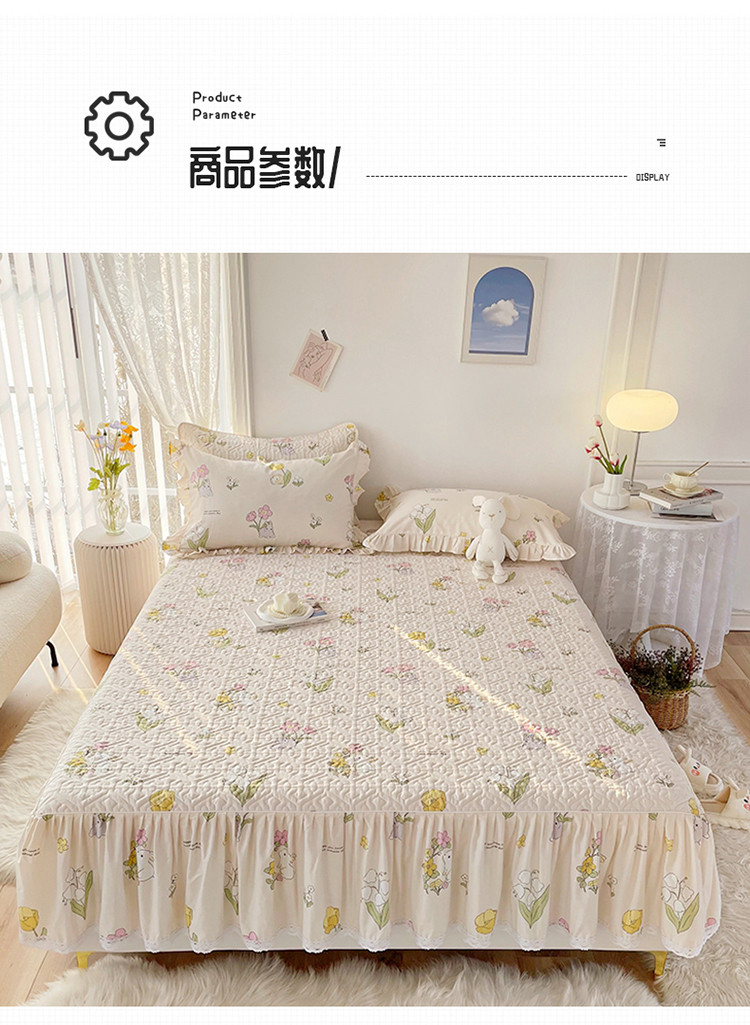忘忧草 2023新款13372全棉夹棉床笠式床裙纯棉 园林兔-玉