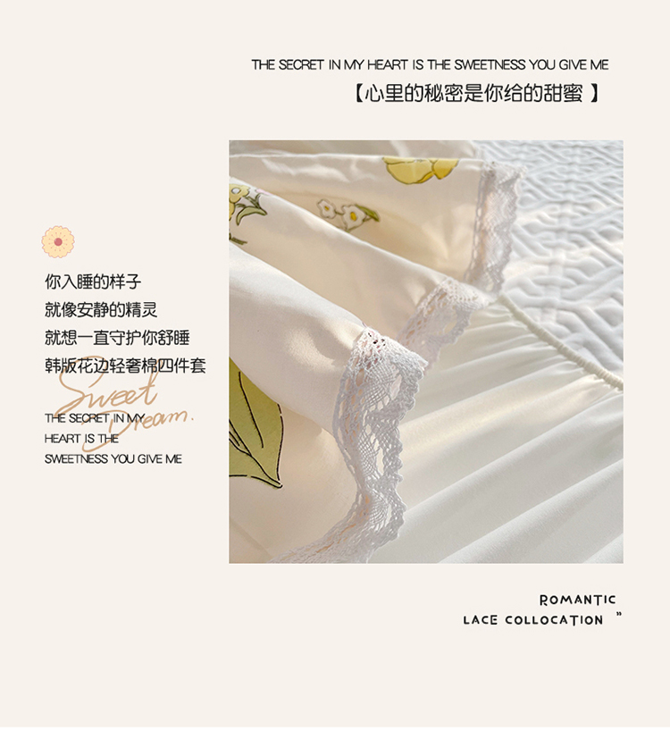 (总)忘忧草 2025新款全棉133*72纯棉小清新床裙花边四件套,妃子笑,花开满满,花里梦,卡芙卡,陌上花颜,倾城繁花 灰,倾城繁花 紫,森物语,屋顶花园,樱桃浪漫,遇见浪漫,云香