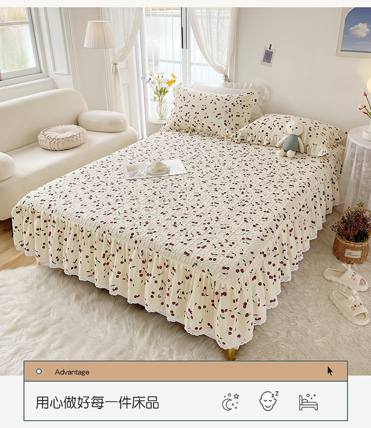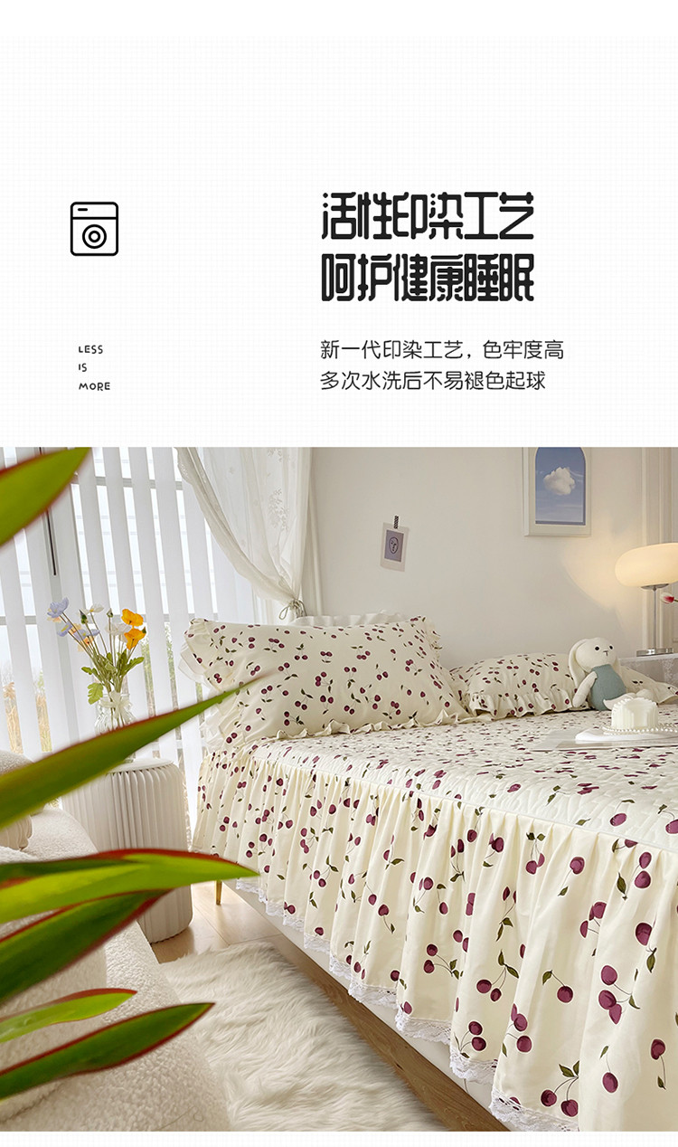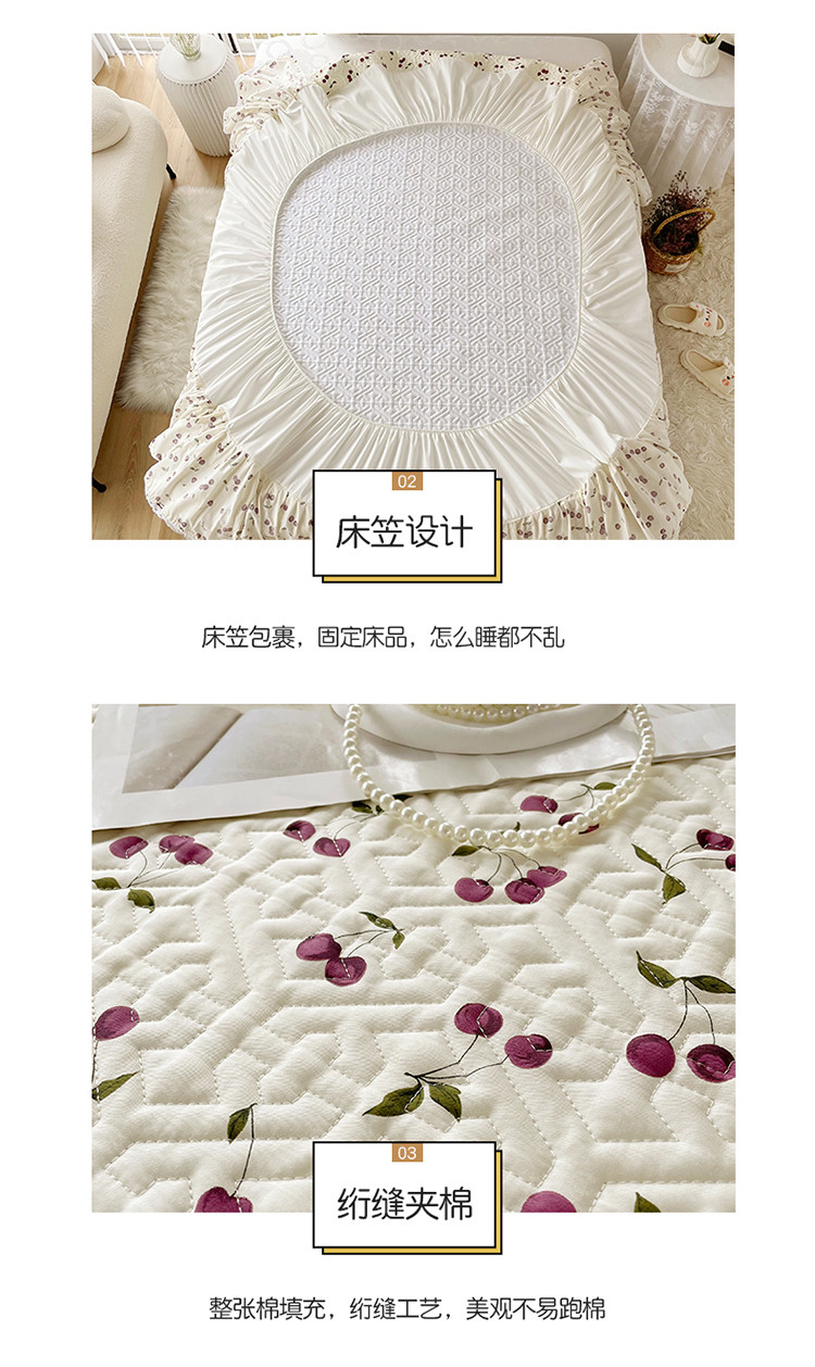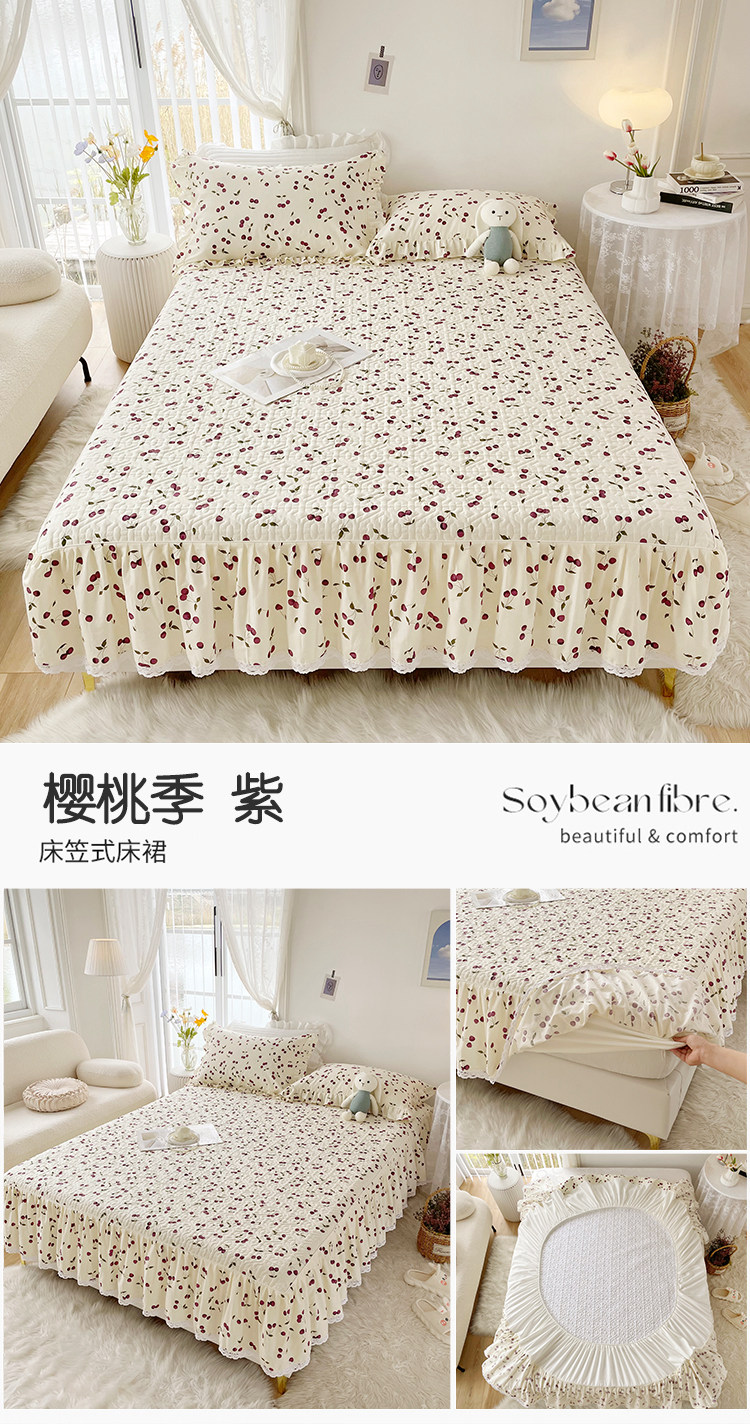 商品名称:忘忧草 2023新款13372全棉夹棉床笠式床裙纯棉 樱桃季 紫