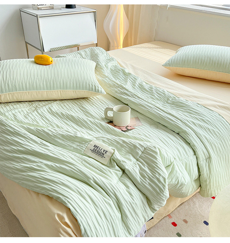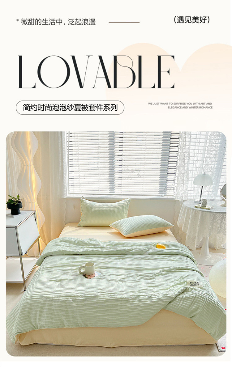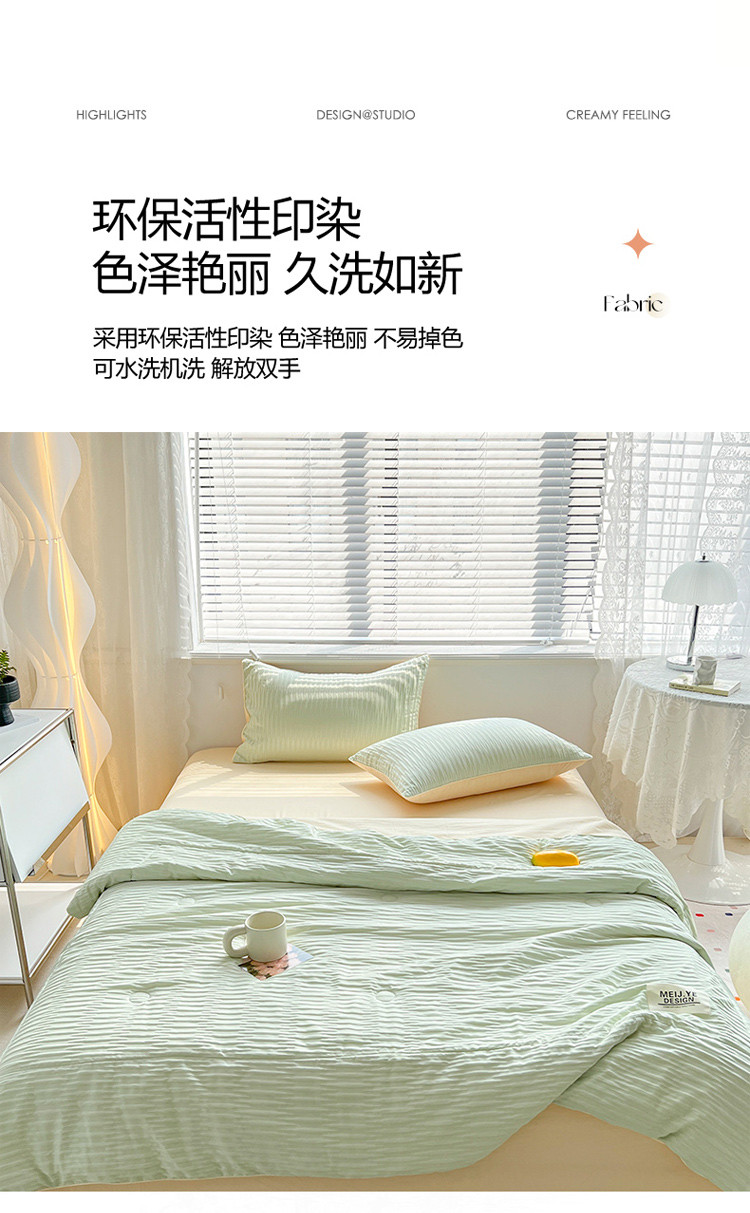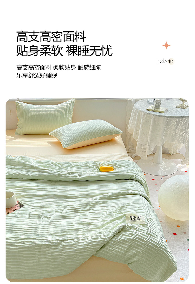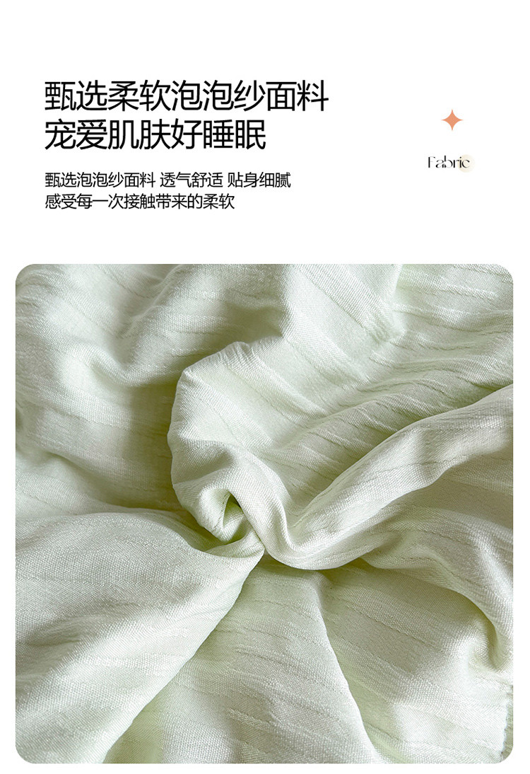 商品名称:寐居家纺 2023新款泡泡纱夏被四件套 泡泡纱-米黄绿