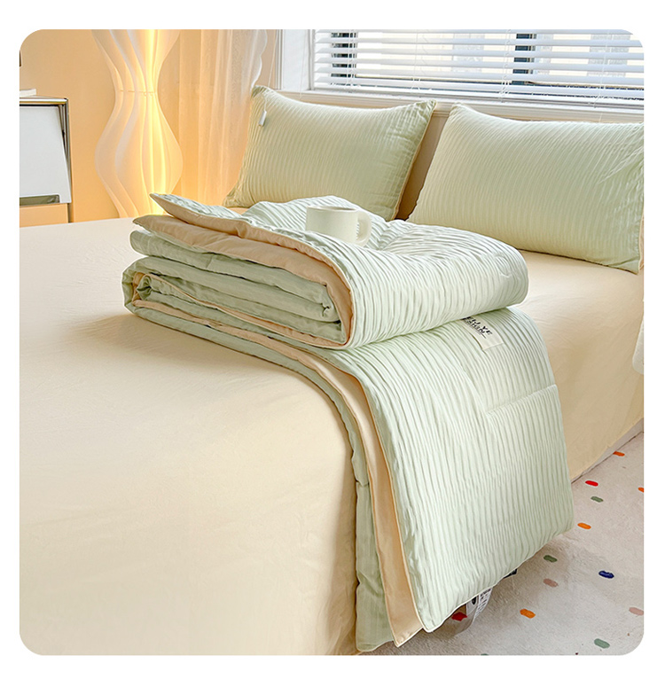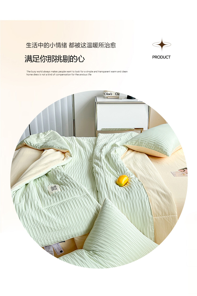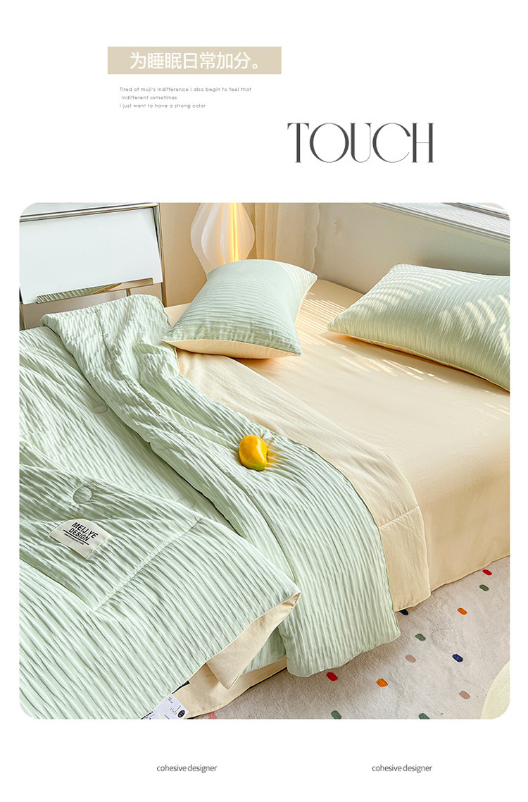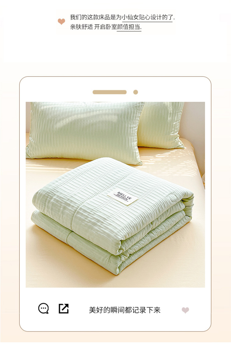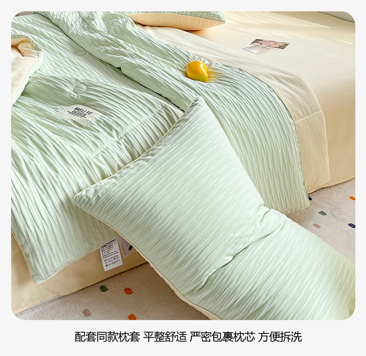 商品名称:寐居家纺 2023新款泡泡纱夏被四件套 泡泡纱-米黄绿