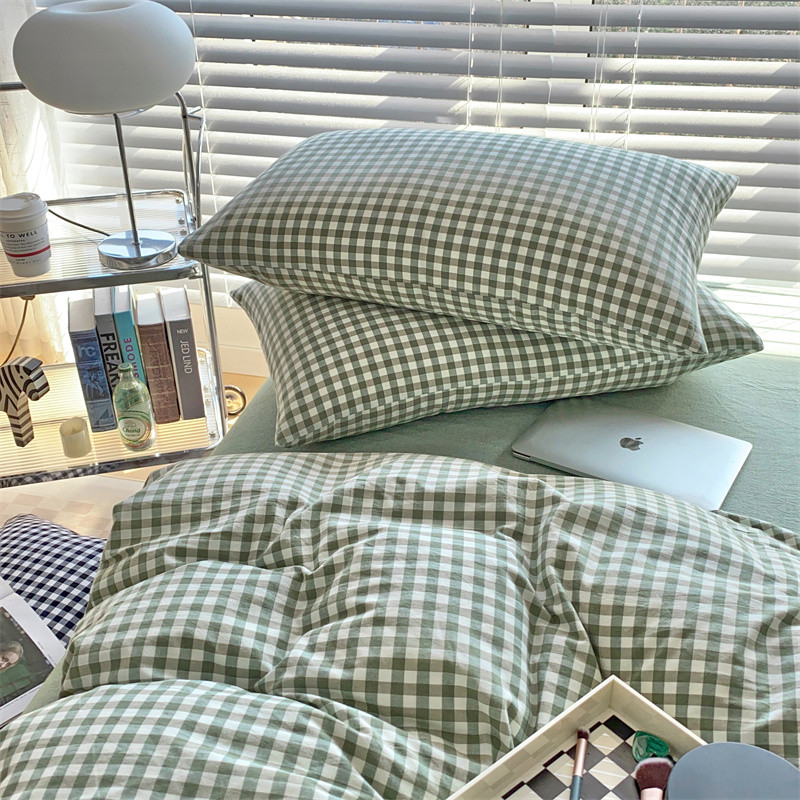 三沁2023新款直播爆款色织水洗棉单品系列单枕套 绿小格