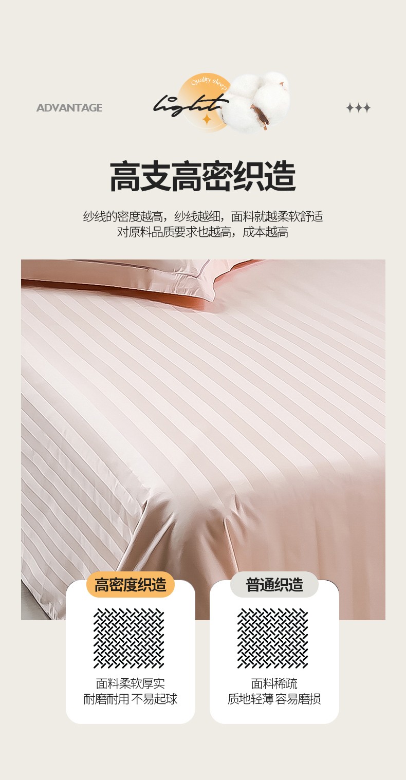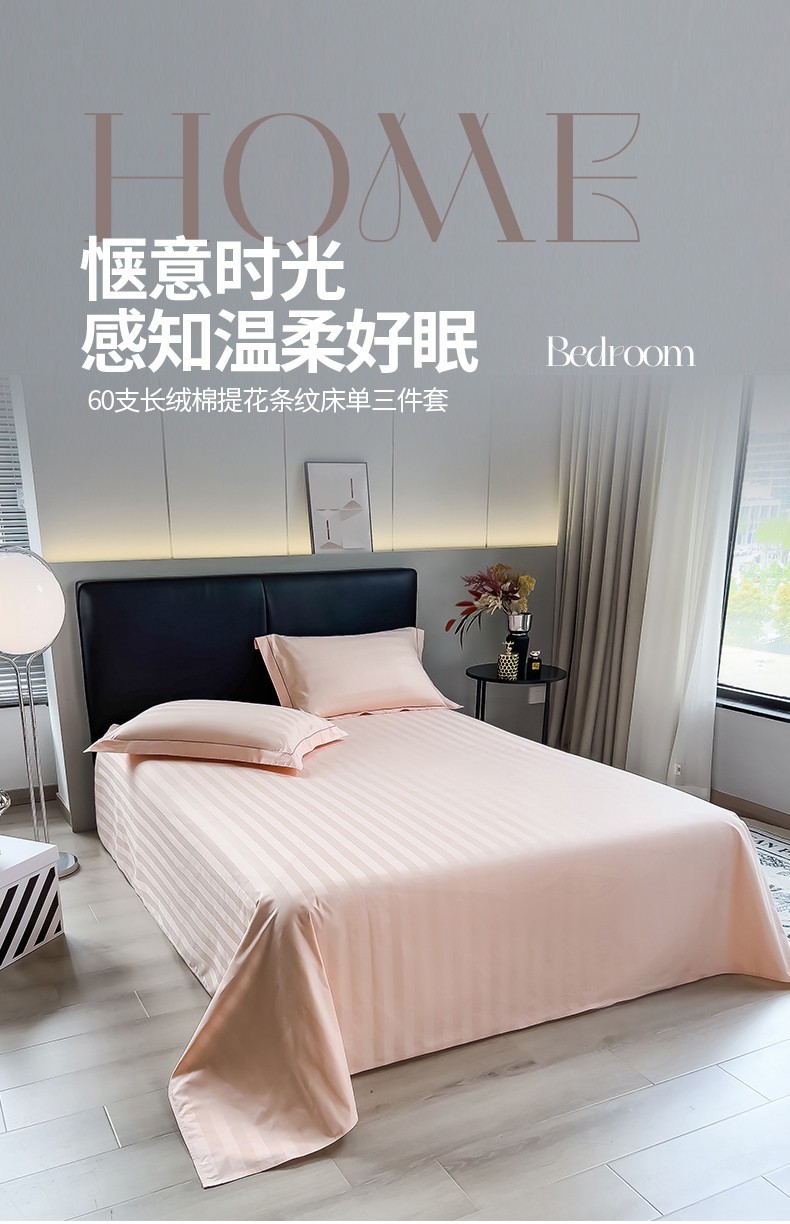 慕尚 2025新款60支长绒棉提花条纹系列单品床单 条纹浅玉