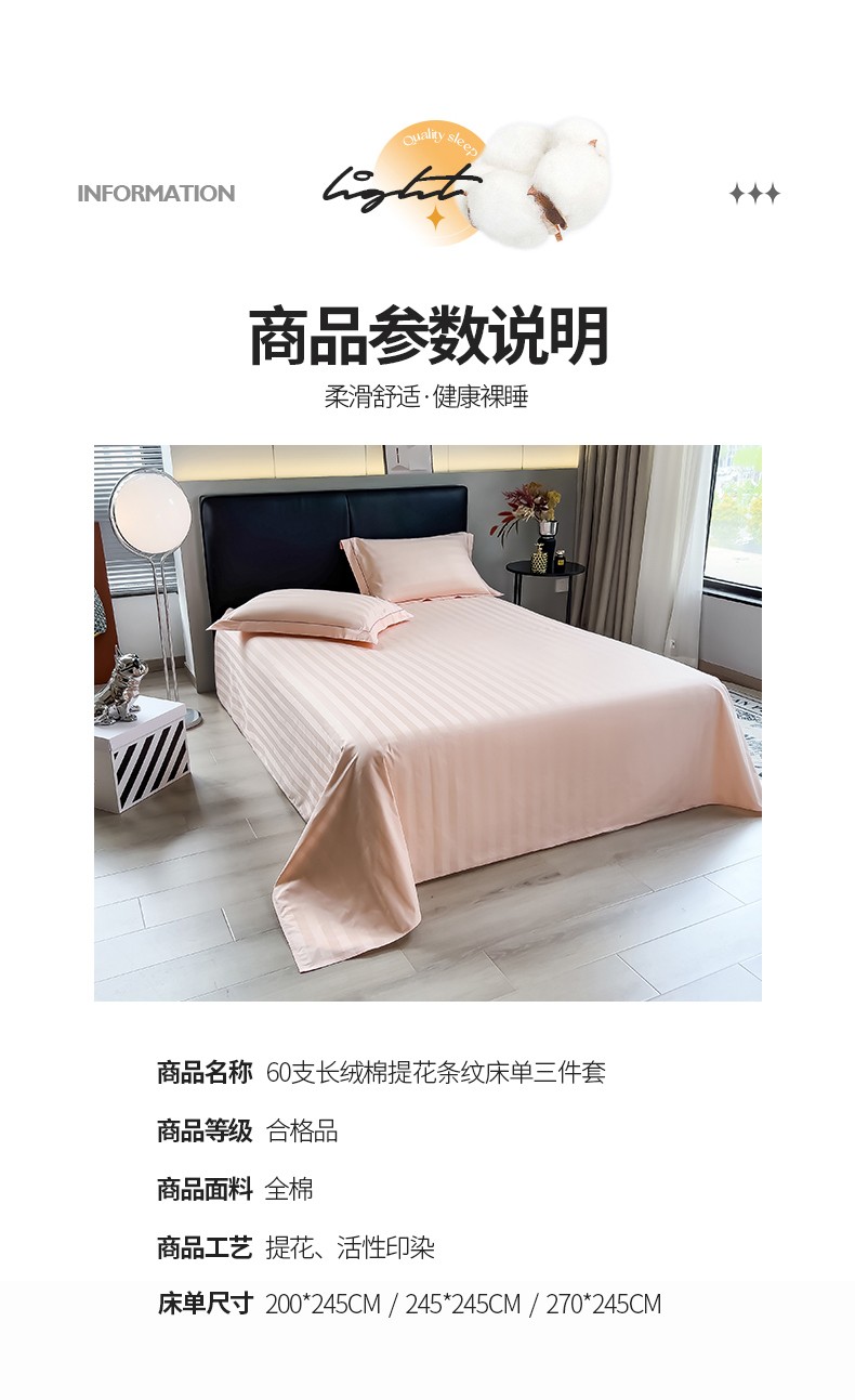 商品名称:慕尚 2025新款60支长绒棉提花条纹系列单品床单 条纹浅玉